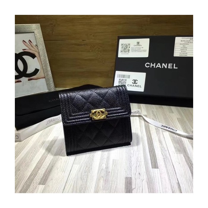 Chanel 2020 여성용 보이 캐비어 지피 반지갑 블랙,그레이,그린 > 샤넬