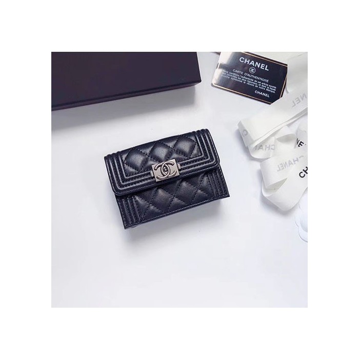 [CHANEL]샤넬 보이 카드지갑-6 램스킨 은장