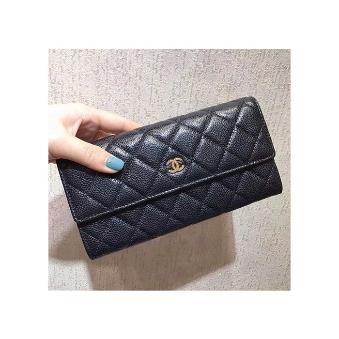 • [CHANEL]샤넬 플랩 장지갑 A50096-3 캐비어 금장