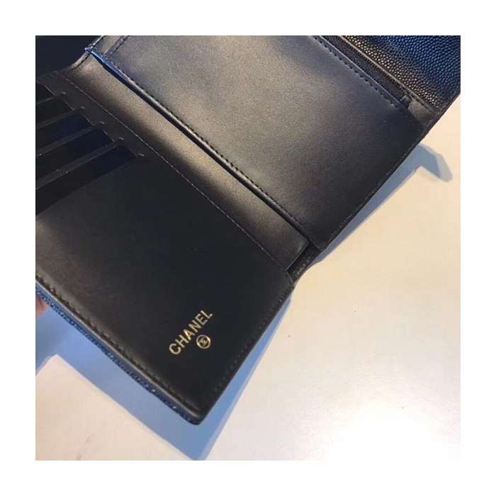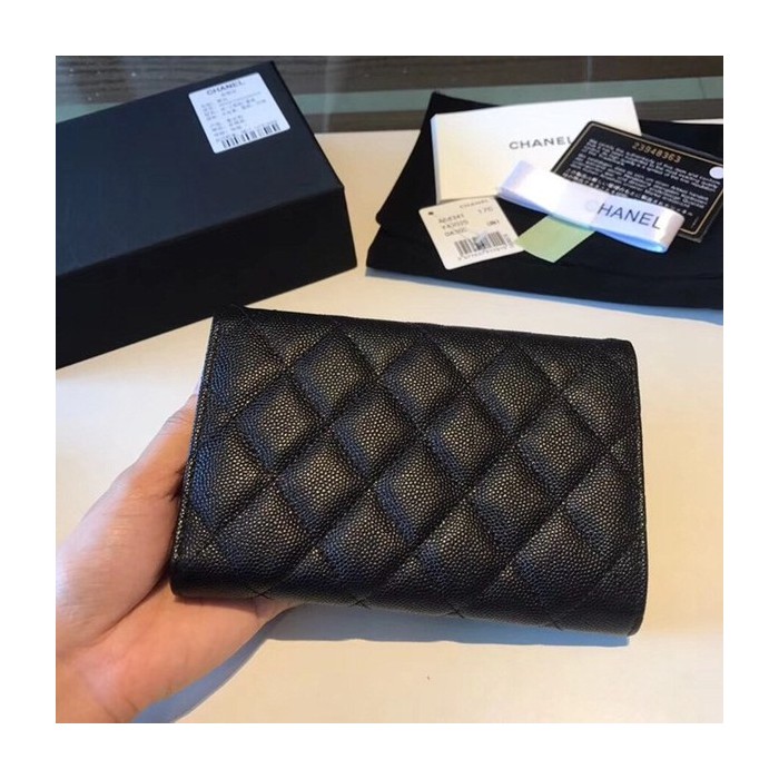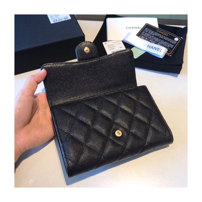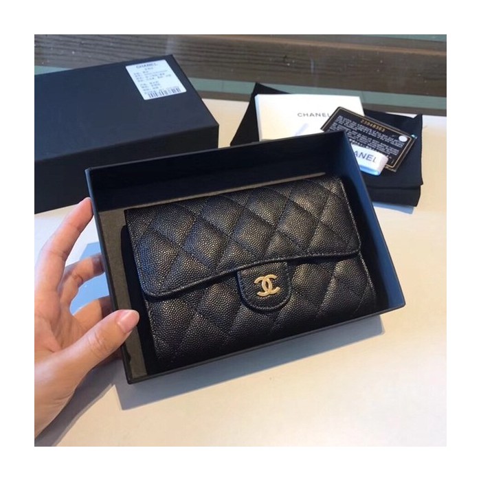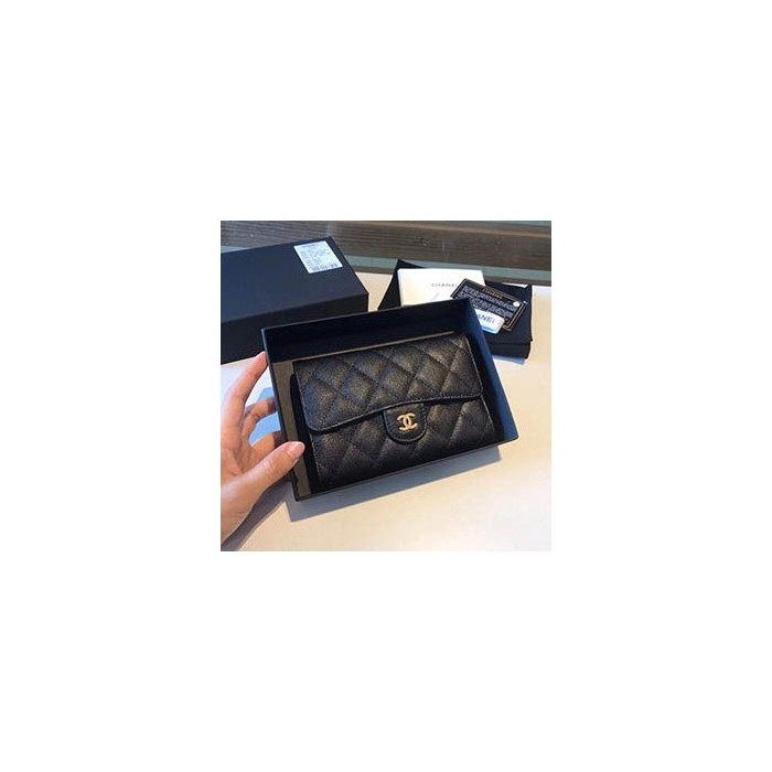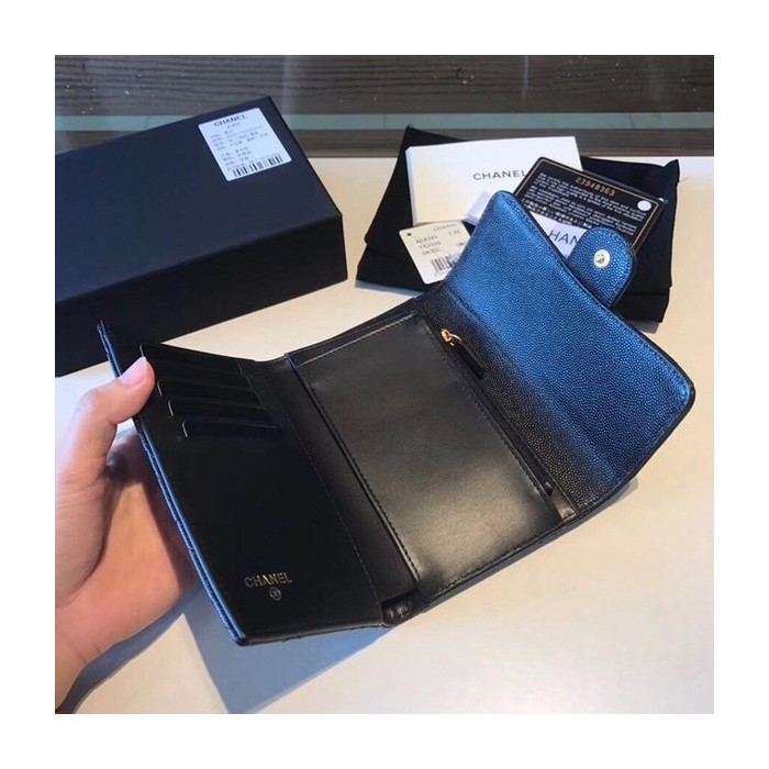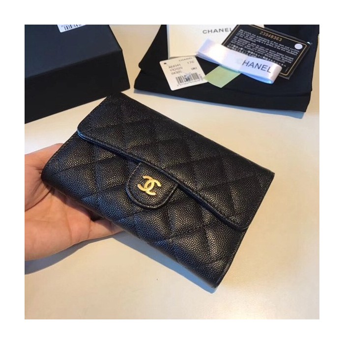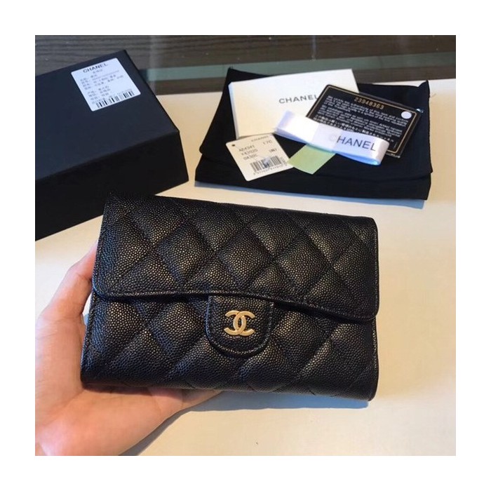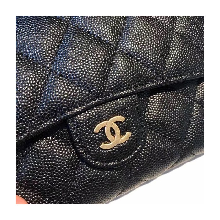 샤넬 중지갑 캐비어 블랙 금장 > 지갑