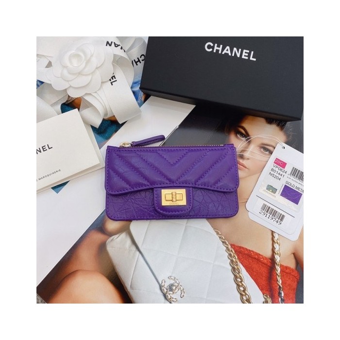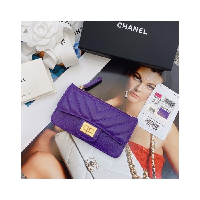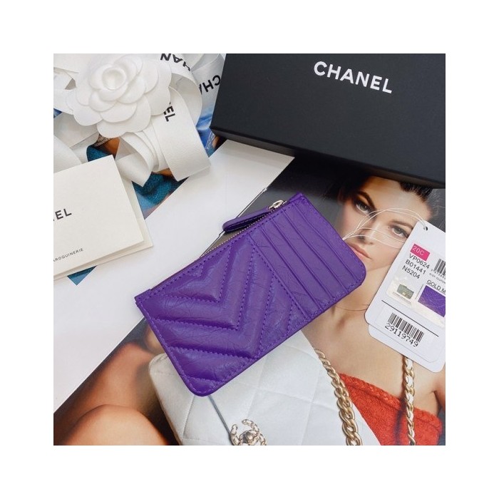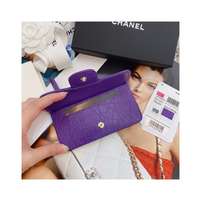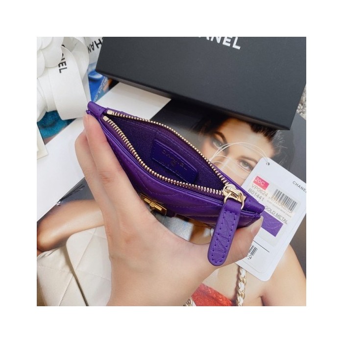 샤넬 2020 여성용 레더 중지갑 / 카드지갑 ,CHAW0080,13cm.퍼플(금장) > 샤넬
