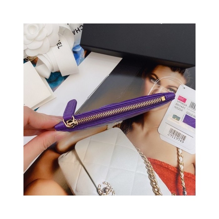 • 샤넬 2020 여성용 레더 중지갑 / 카드지갑 ,CHAW0080,13cm.퍼플(금장)