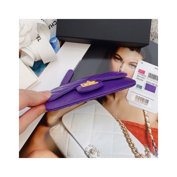 샤넬 2020 여성용 레더 중지갑 / 카드지갑 ,CHAW0080,13cm.퍼플(금장)