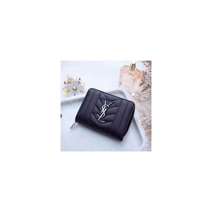 생로랑 모노그램 컴팩트 집어라운드 반지갑 437470 블랙은장