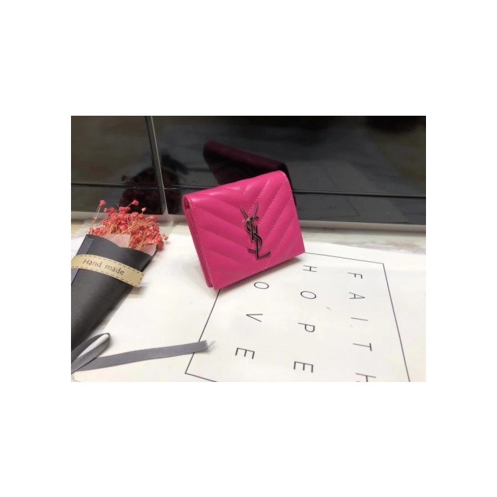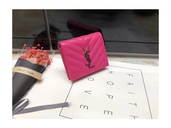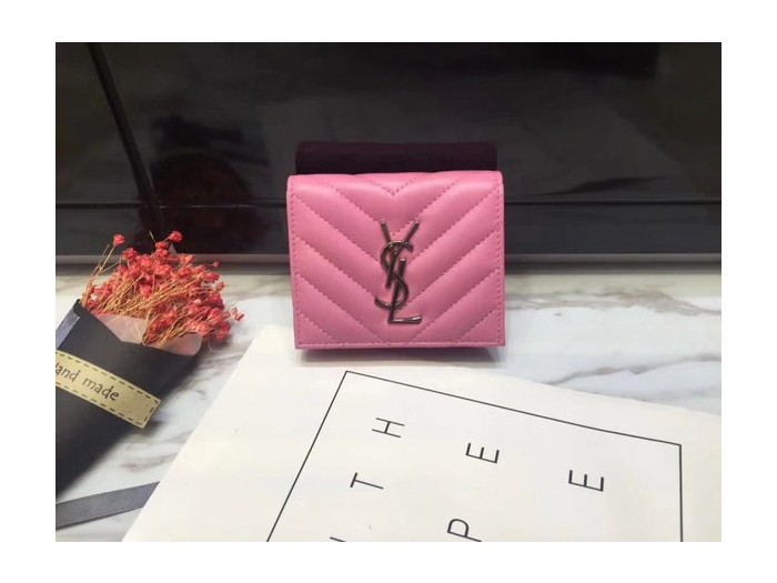 Saint Laurent 2020 여성용 퀄팅 반지갑 핫핑크,핑크