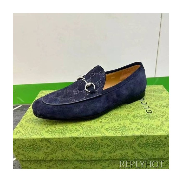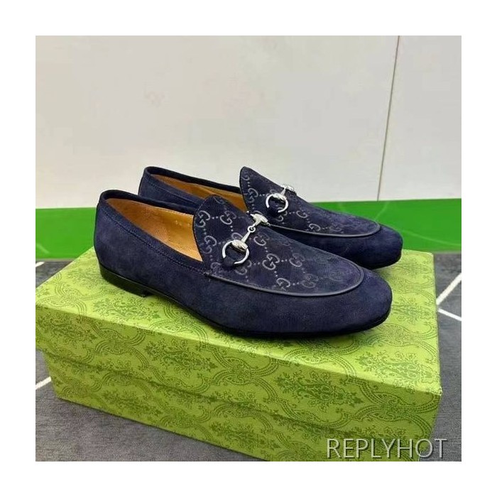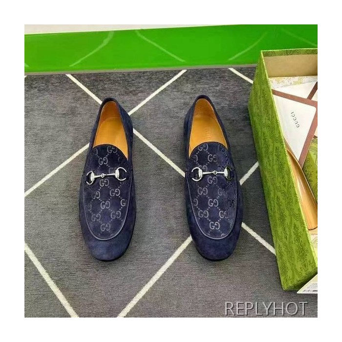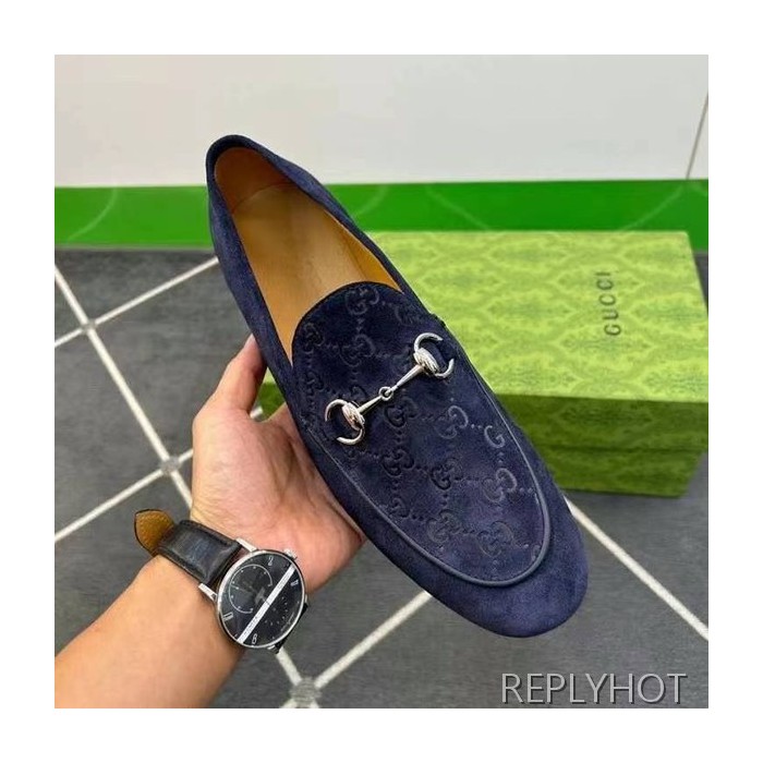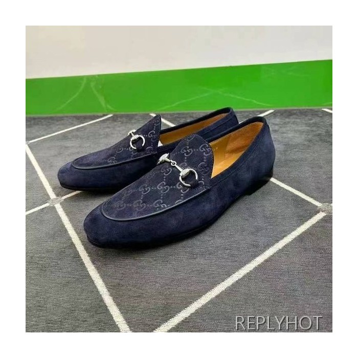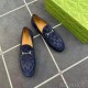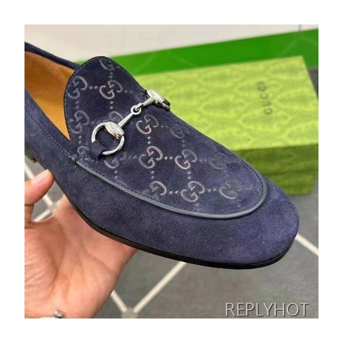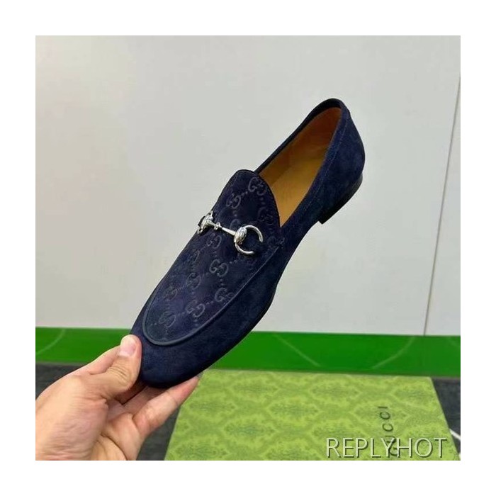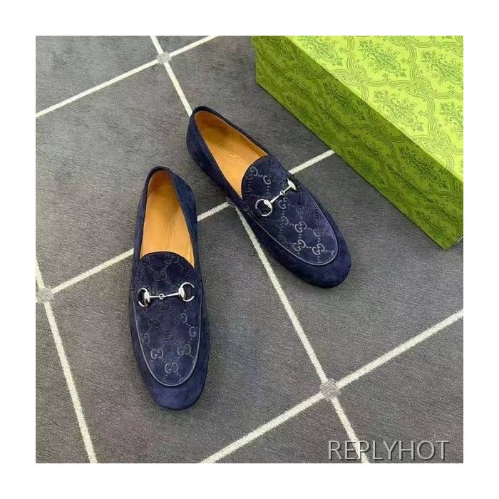 구찌 2024 탑 자카드로고 네이비 스웨이드 홀스빗 로퍼 구두 신발