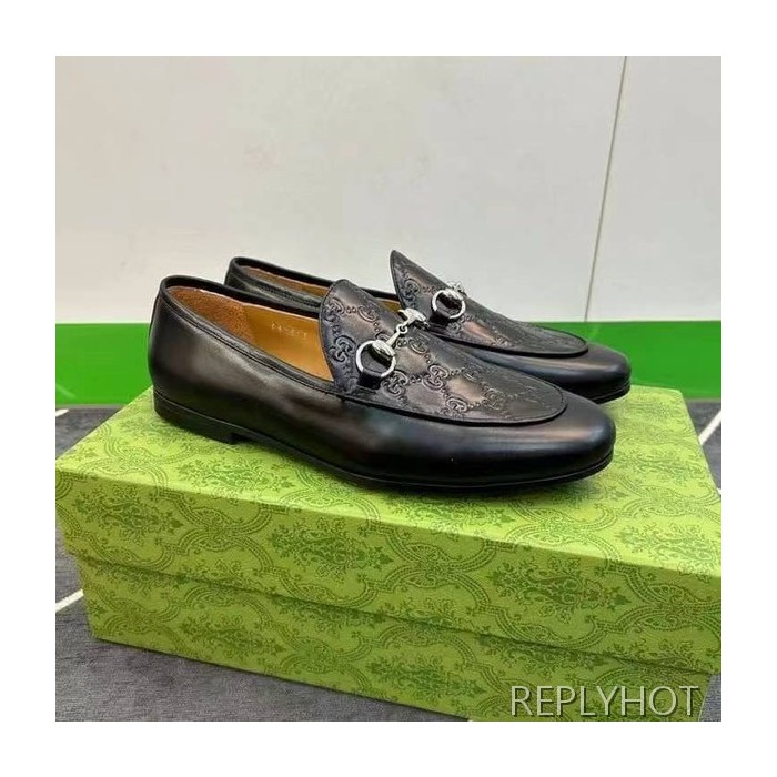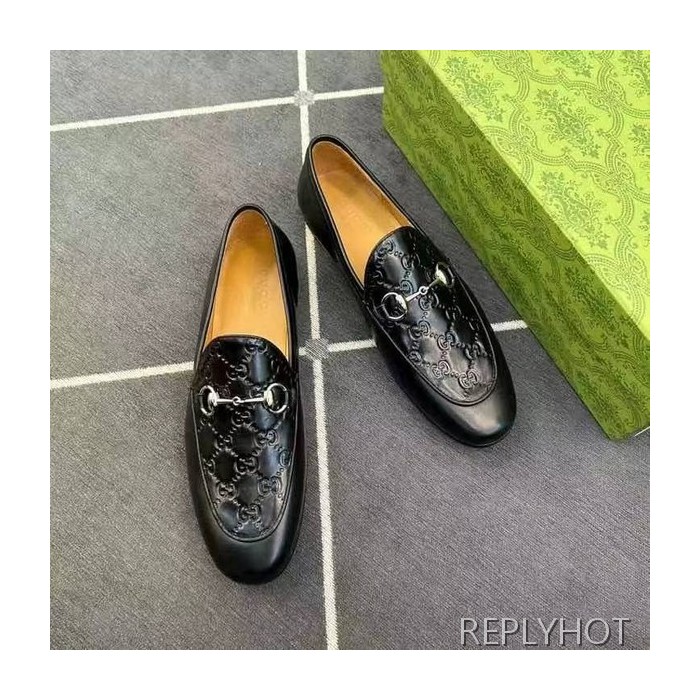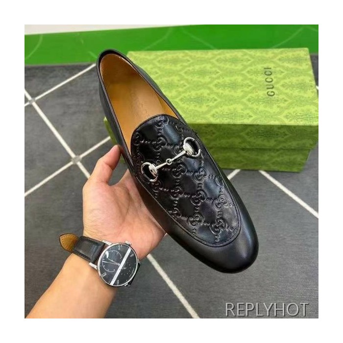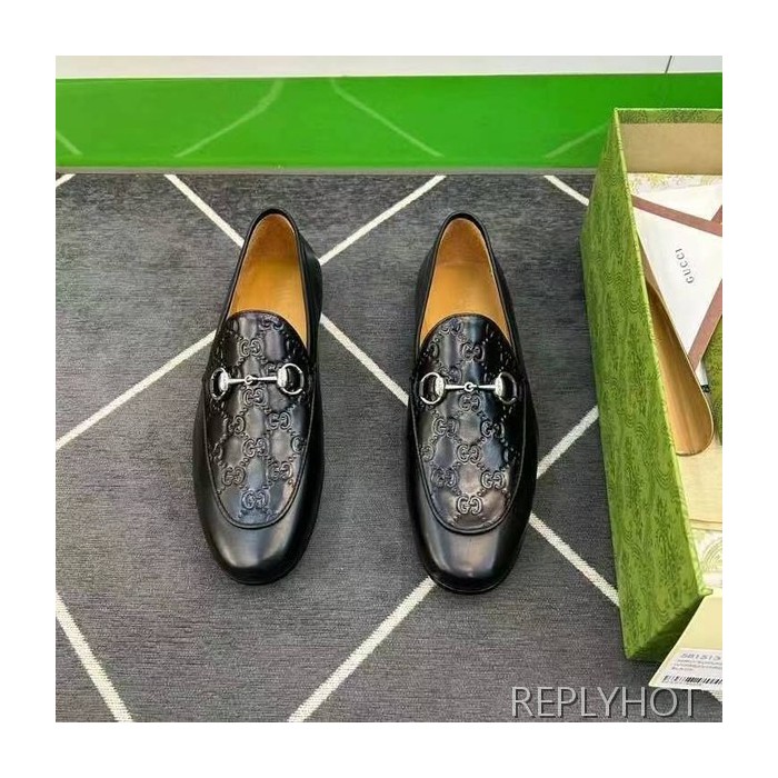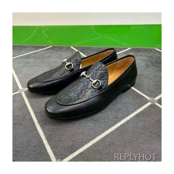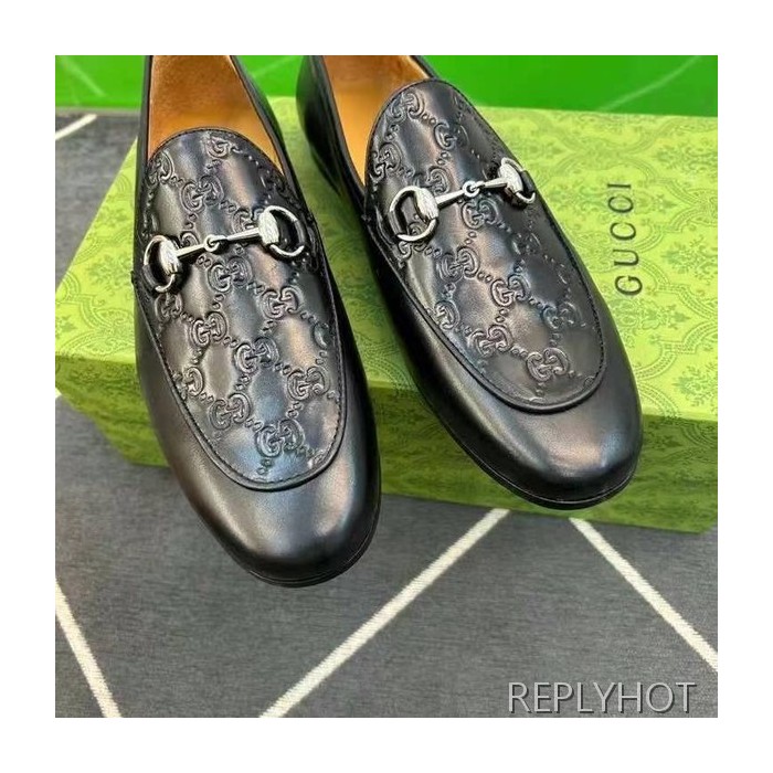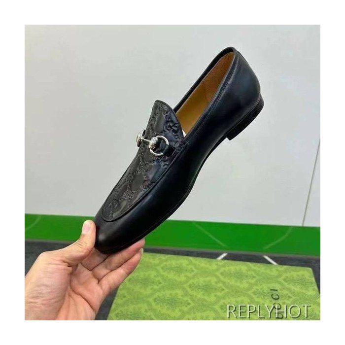 구찌 2024 탑 자카드로고 블랙 레더 홀스빗 로퍼 구두 신발