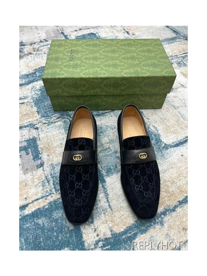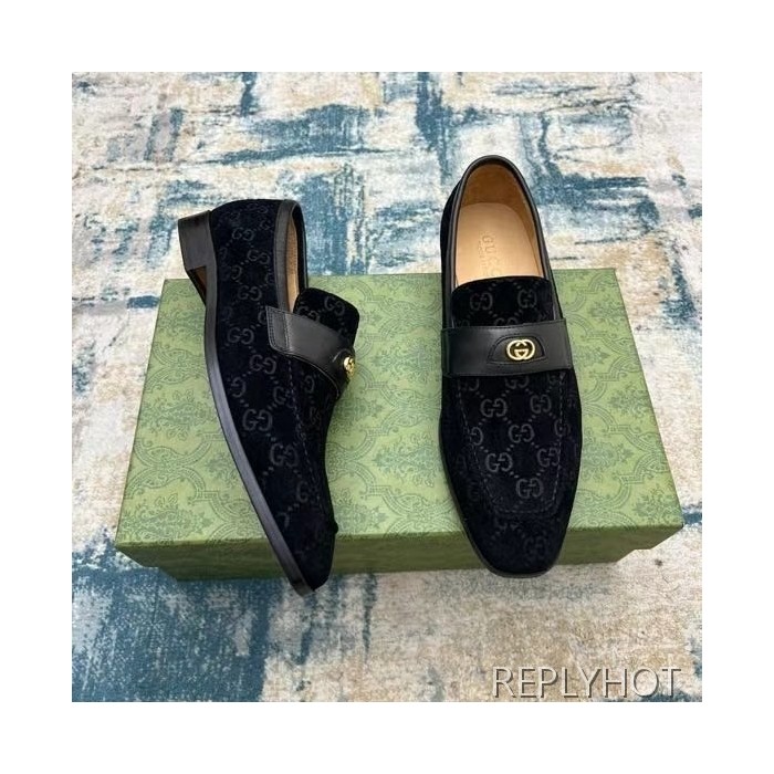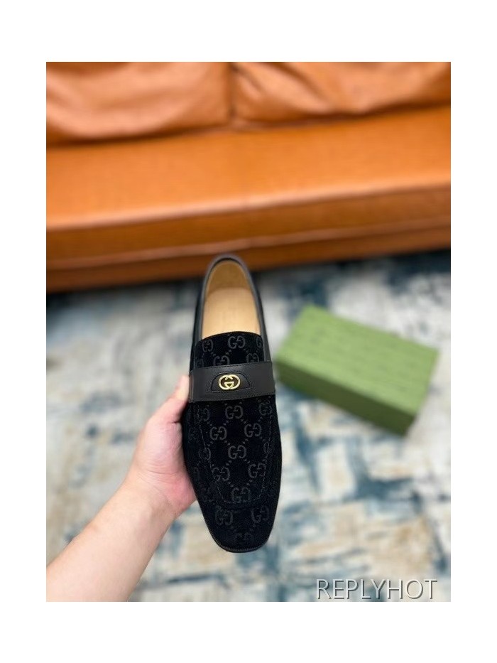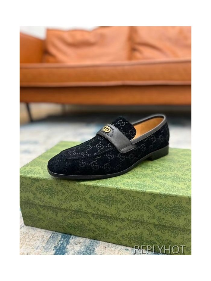 구찌 2022 인터로킹 페니 로퍼 스웨이드 블랙 컬러