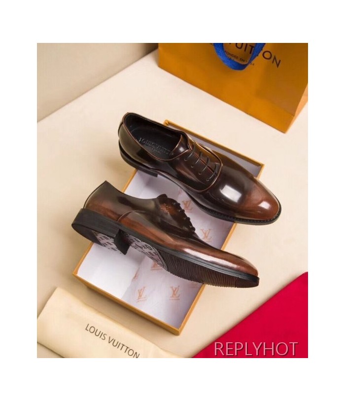 Louis Vuitton Straighi Tip Red Brown Mens Dress Shoes