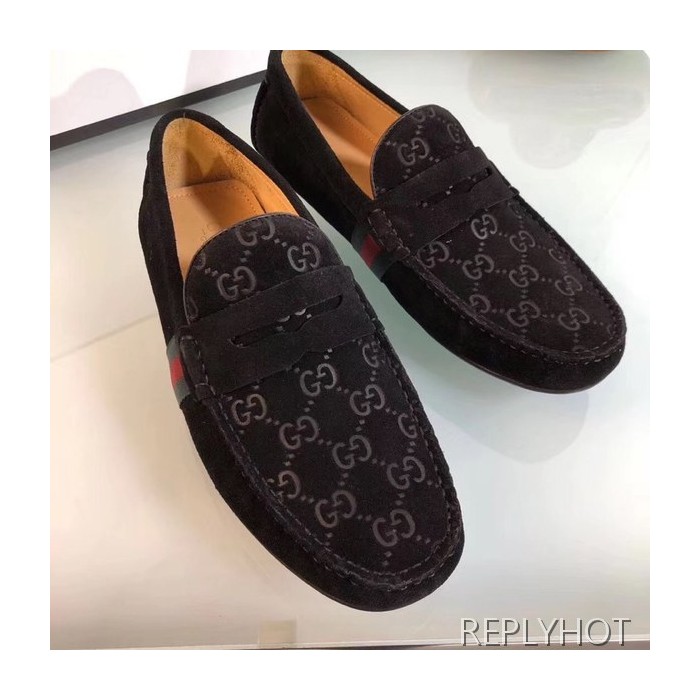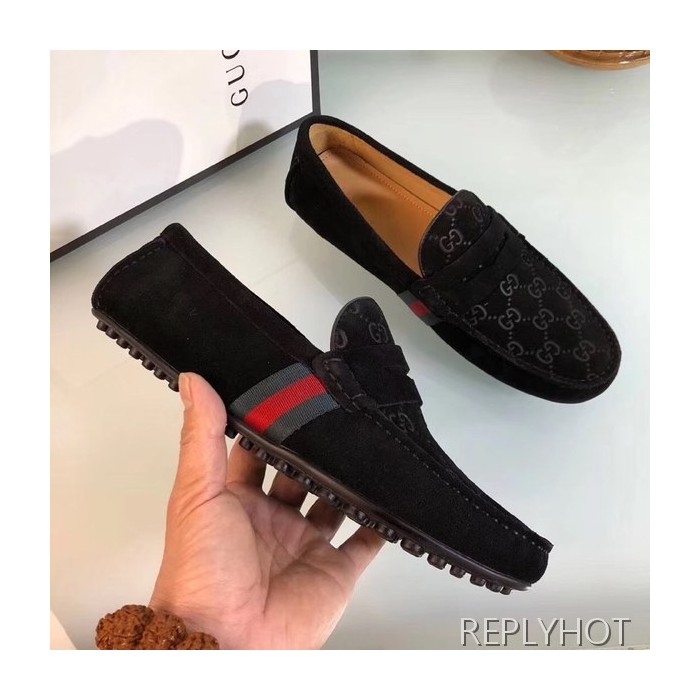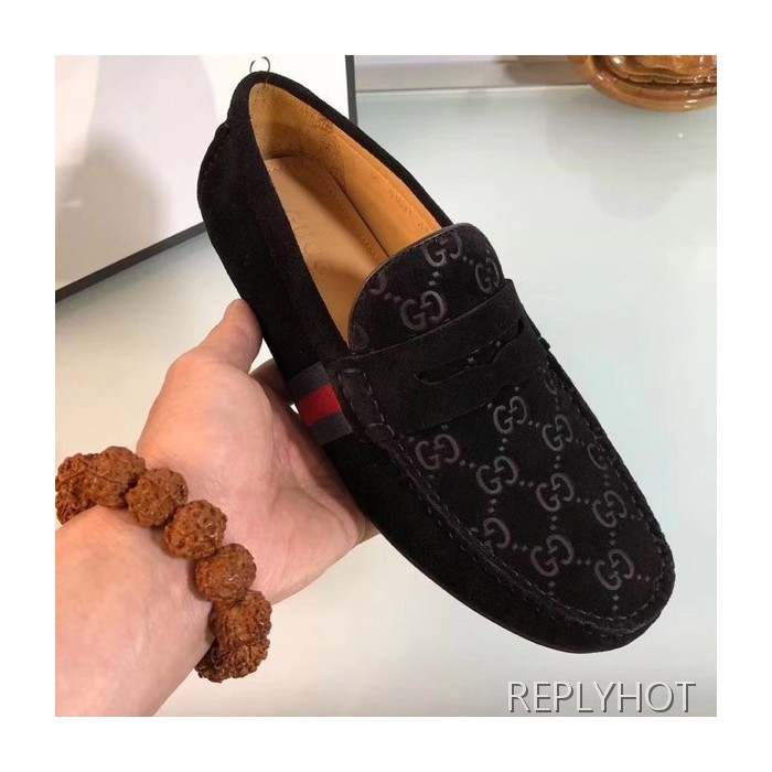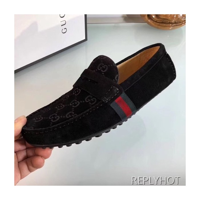 구찌 2020 사이드테이프 마이크로시마 스웨이드 드라이빙슈즈