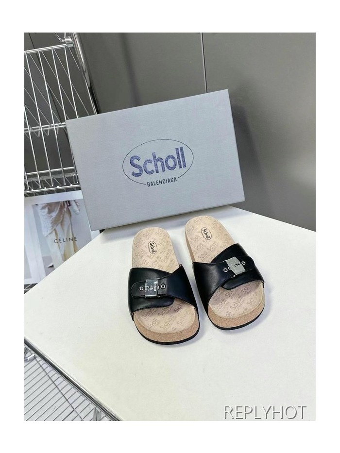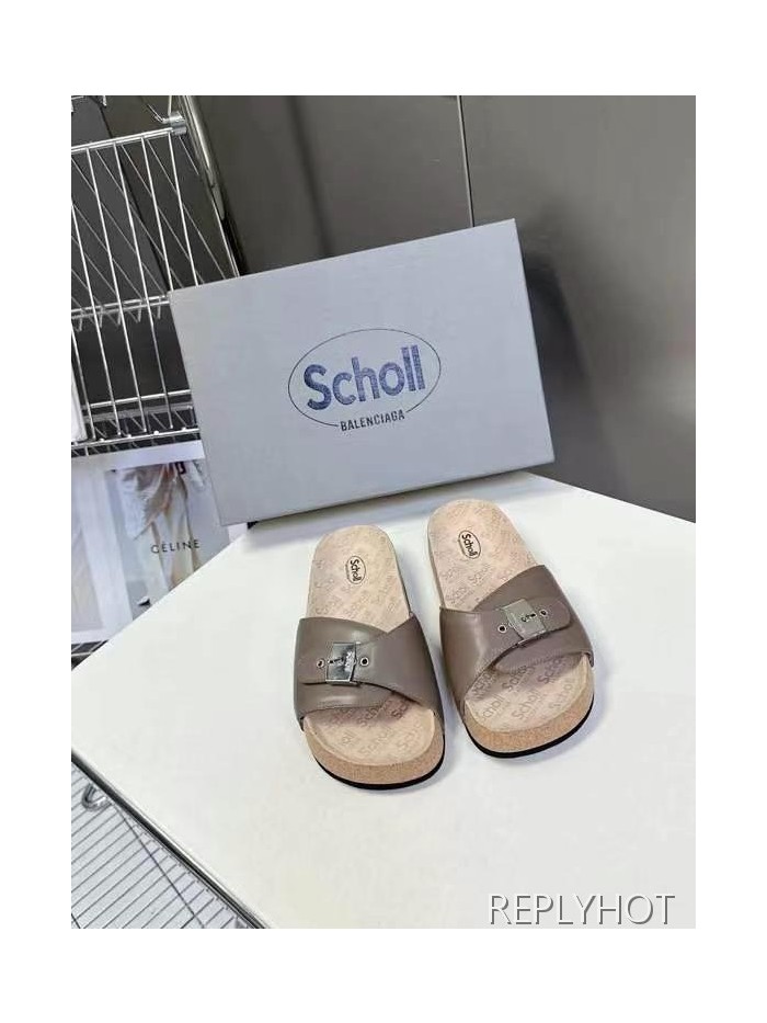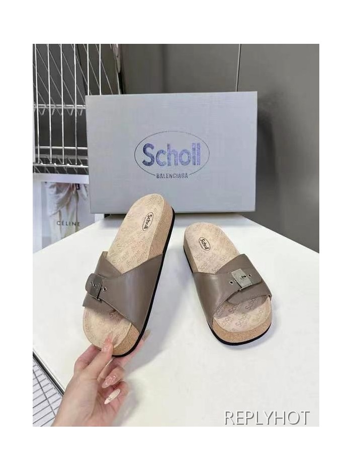 발렌시아가 2025 scholl 플랫 스웨이드 뮬 샌들 슬리퍼 신발
