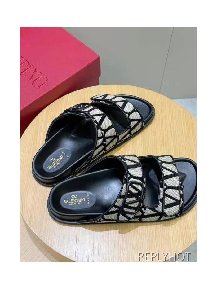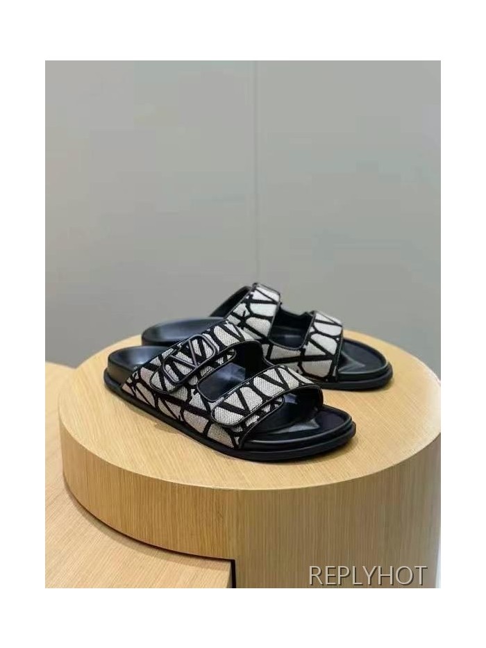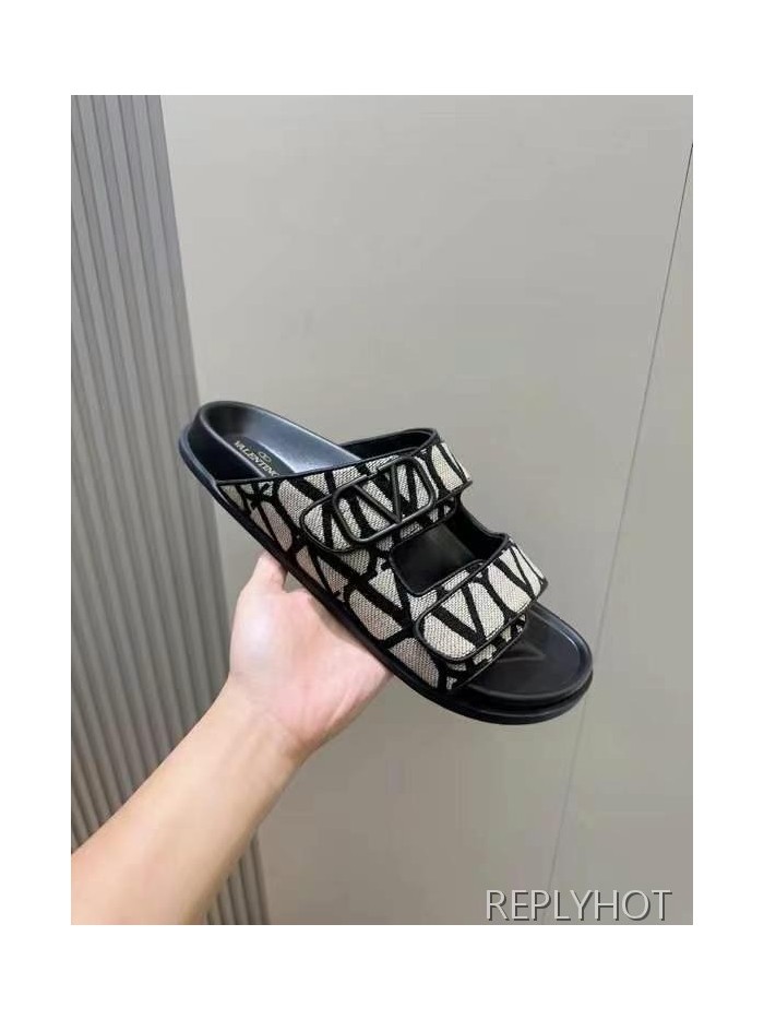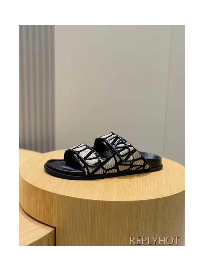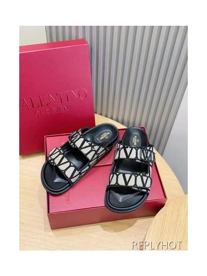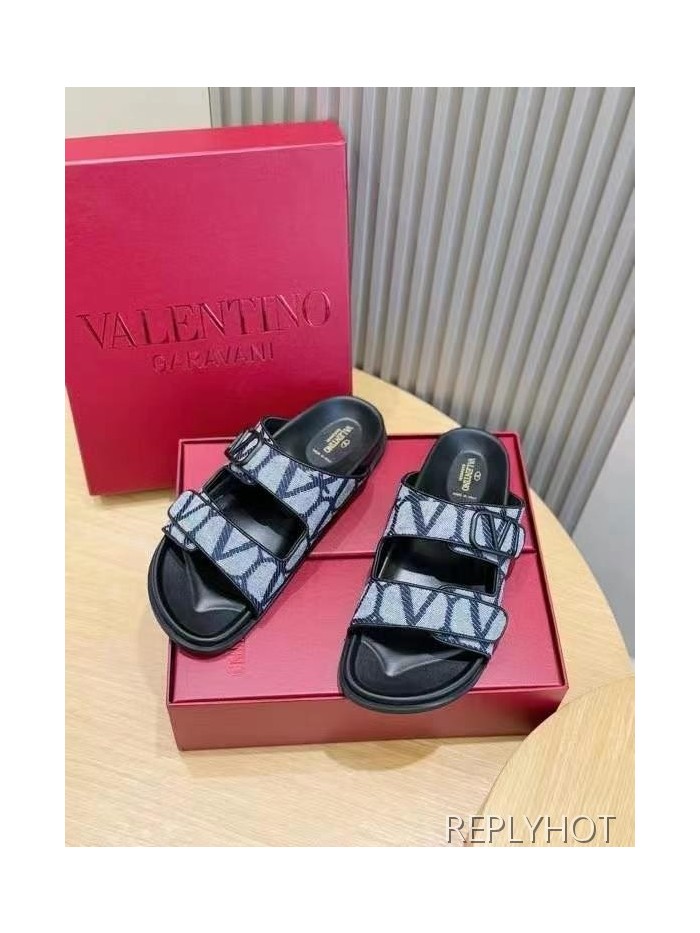 발렌티노 2025 VLogo Toile Iconographe double strap 샌들 슬리퍼
