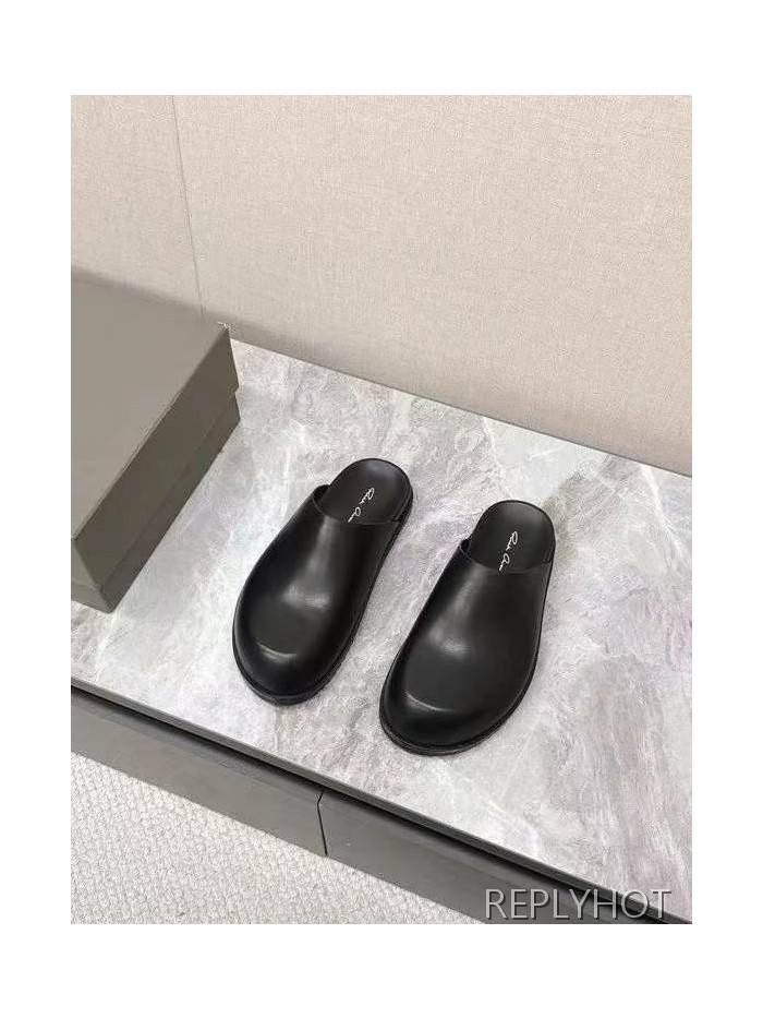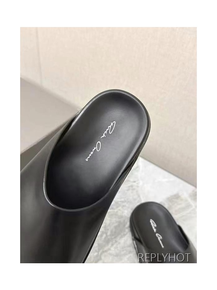 릭오웬스 2025 블랙 레더 할리우드 뮬 샌들 슬리퍼 신발