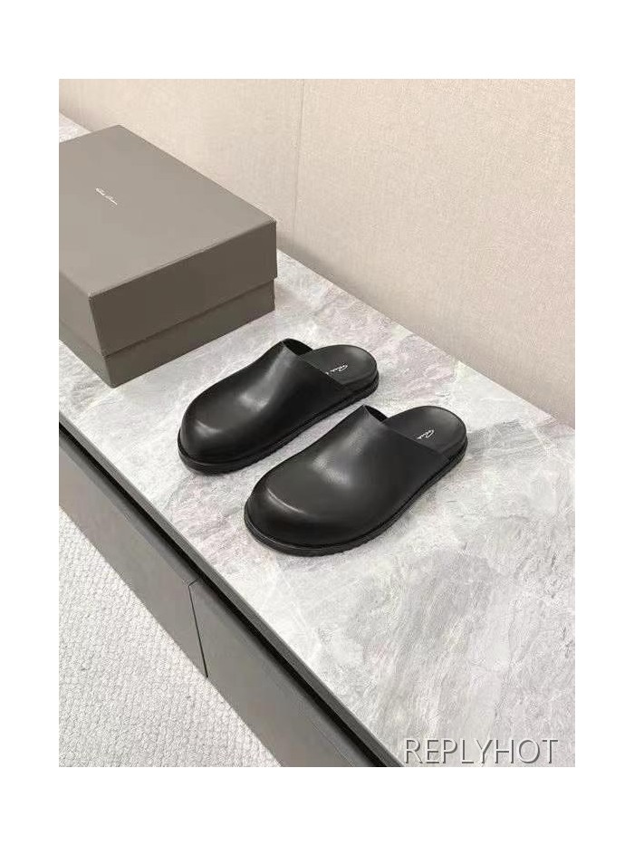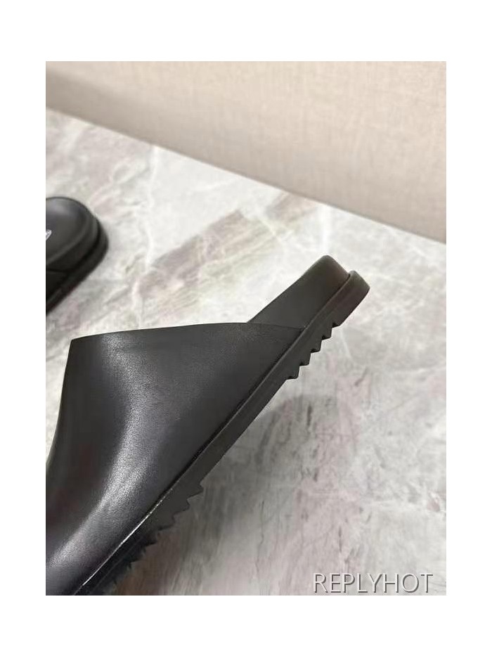 릭오웬스 2025 블랙 레더 할리우드 뮬 샌들 슬리퍼 신발 > 샌들