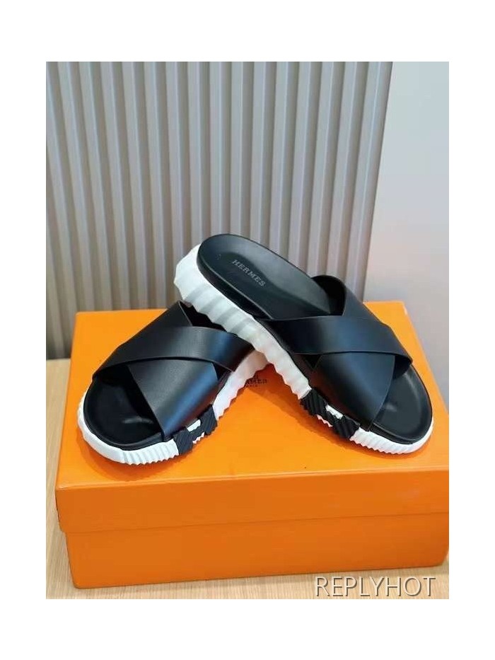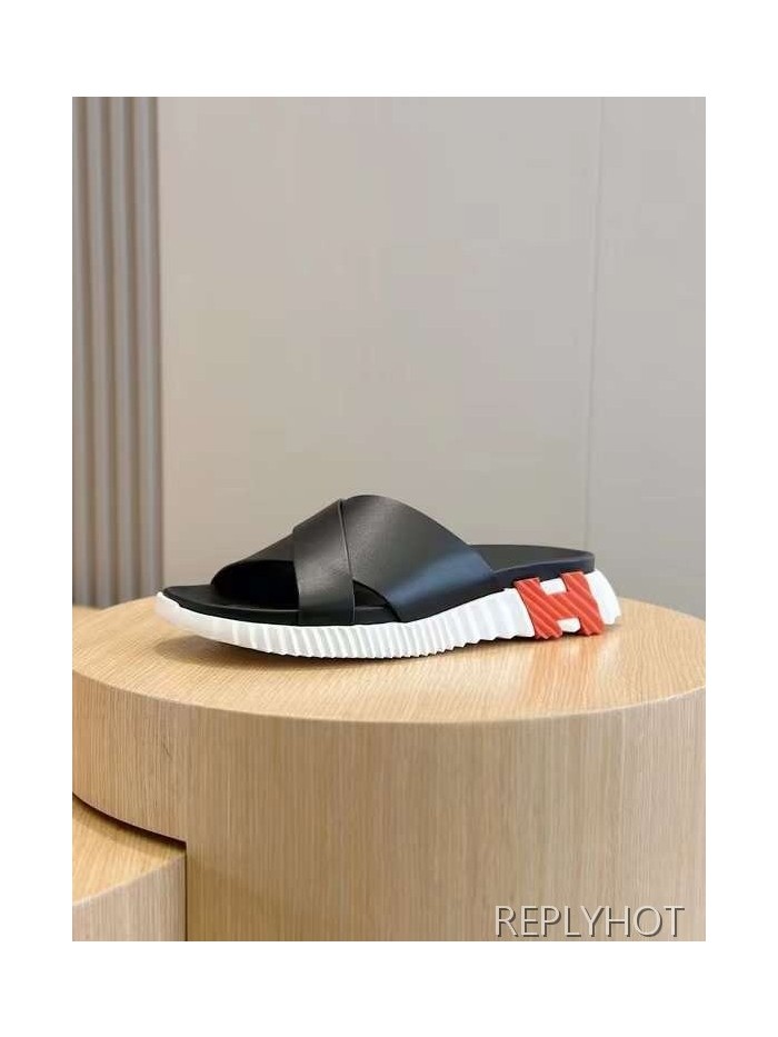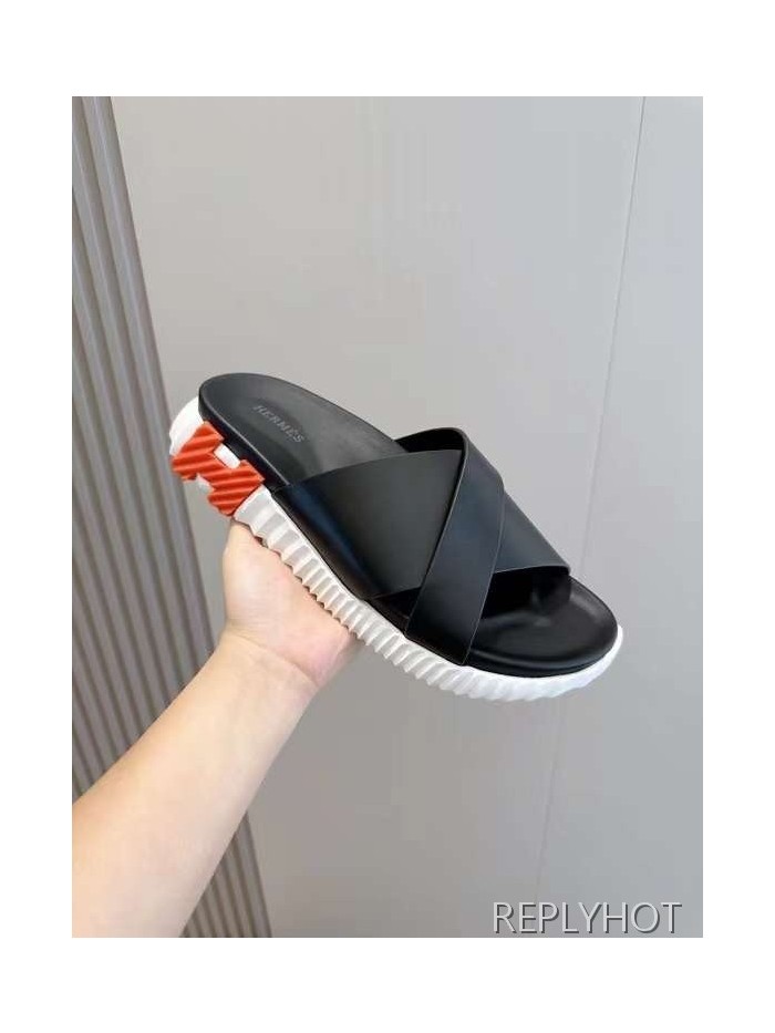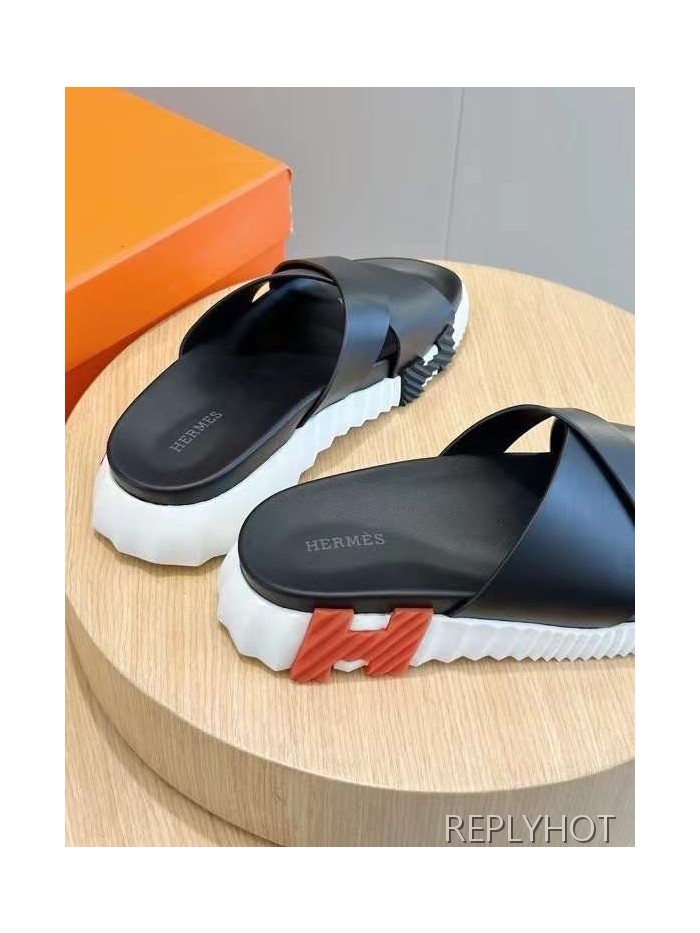 에르메스 2024 INFRA 인프라 레더 슬라이드 샌들 뮬 슬리퍼