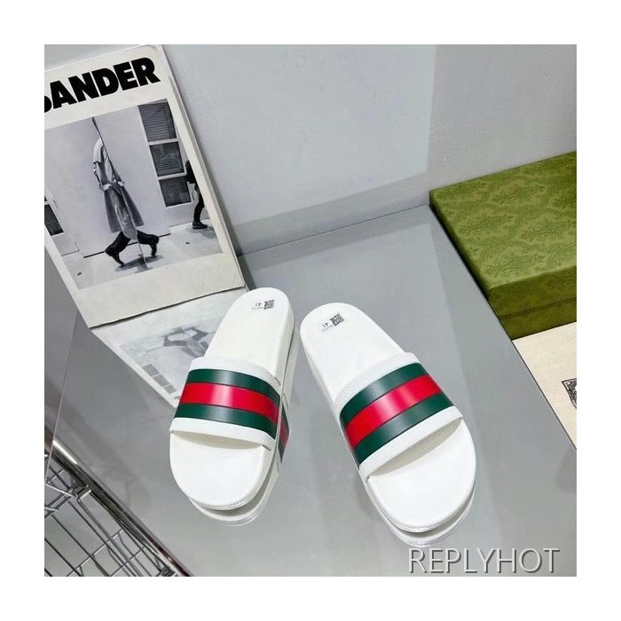 구찌 2023 그린 레드 스트라이프 샌들 뮬 슬리퍼 > 구찌