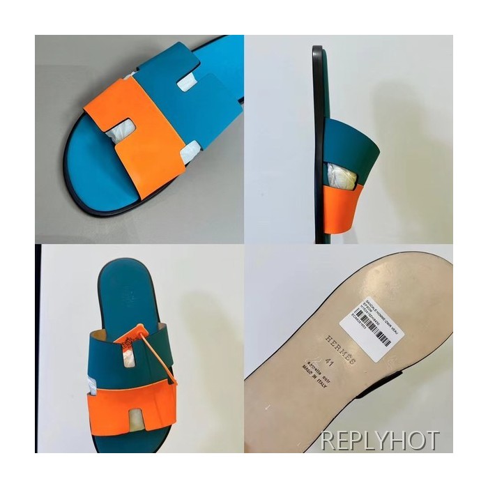 에르메스 2022 투톤 블루&오렌지 이즈미르 샌들