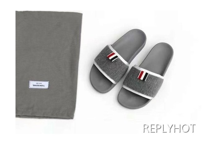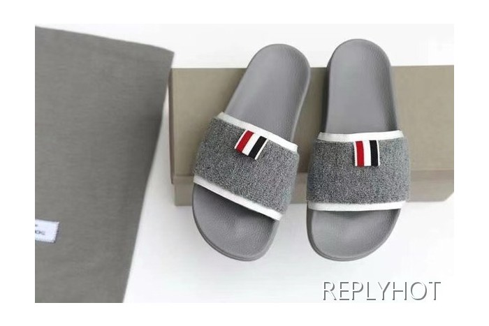 톰브라운 2022 그레이 화이트 파이핑 울 비치 샌들 슬라이드 > 샌들