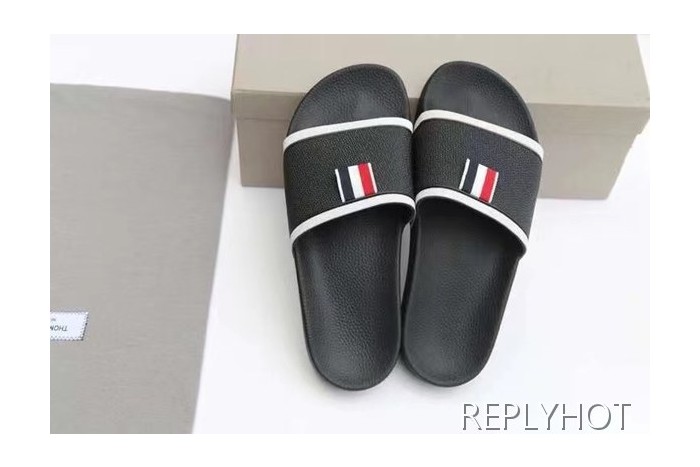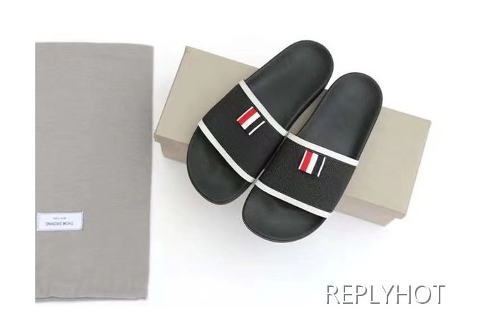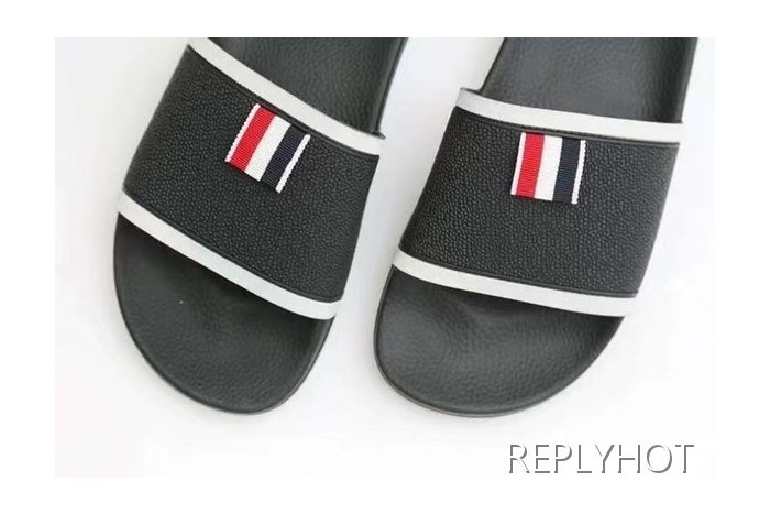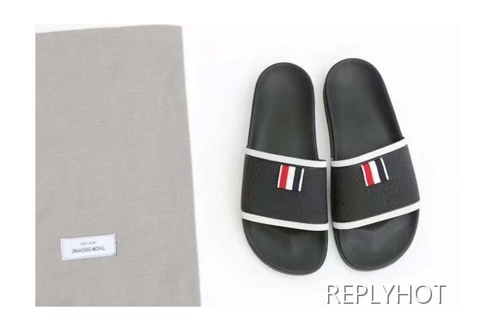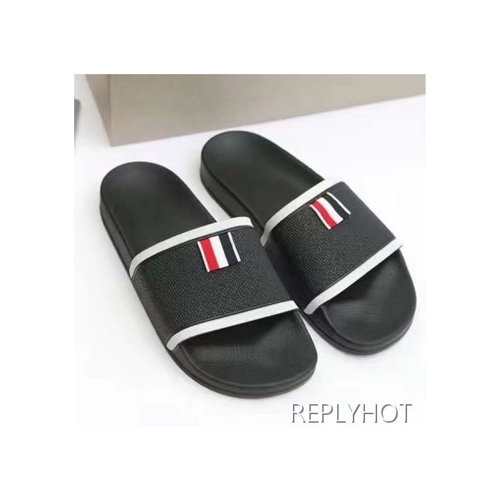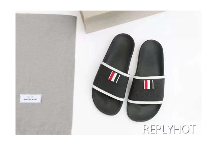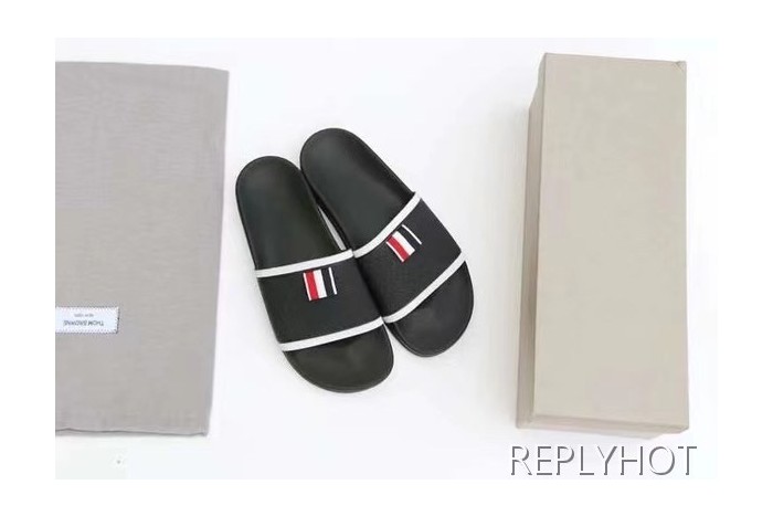 톰브라운 2022 블랙 화이트 파이핑 테이프 비치 샌들 슬라이드