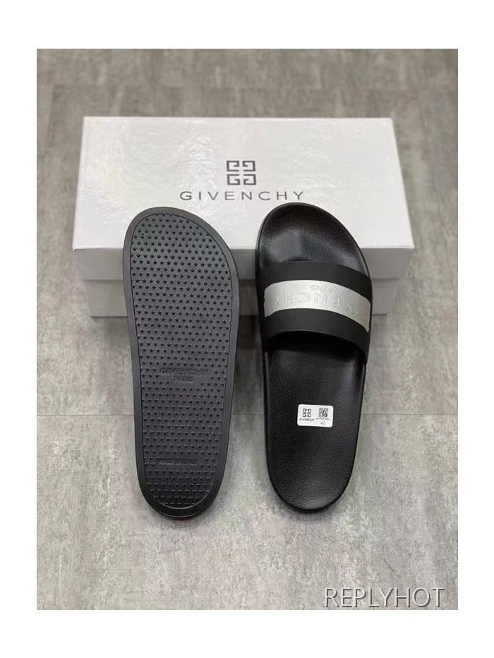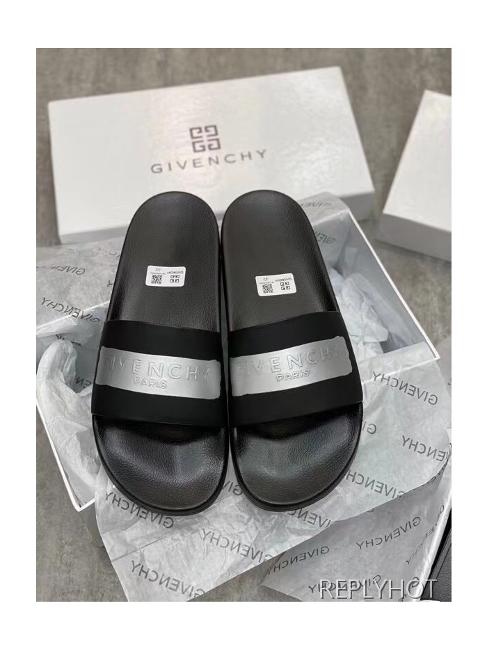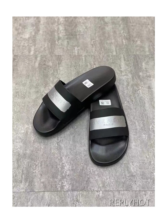 지방시 2021 실버 엠보로고 스트라이프 비치 샌들