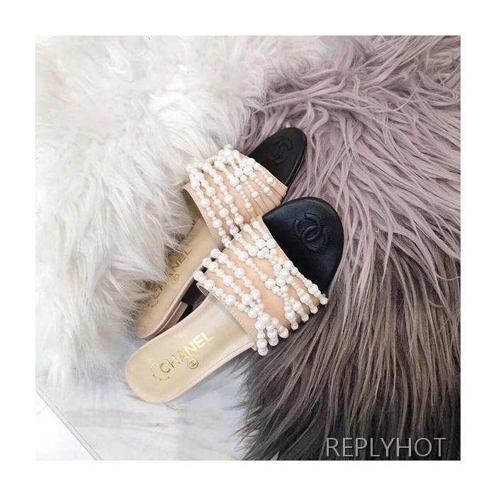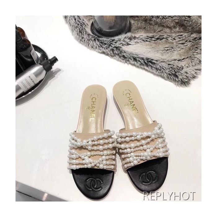 샤넬진주 슬리퍼 베이지 > 샤넬
