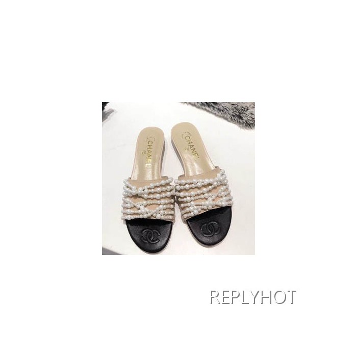 샤넬진주 슬리퍼 베이지