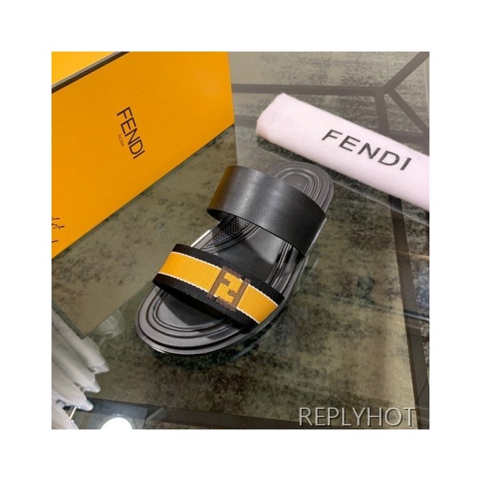 Fendi 2020 Mens Leather & Knit Slipper