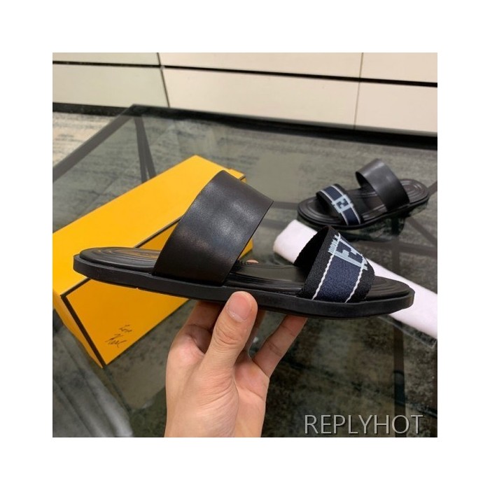 Fendi 2020 Mens Leather & Knit Slipper