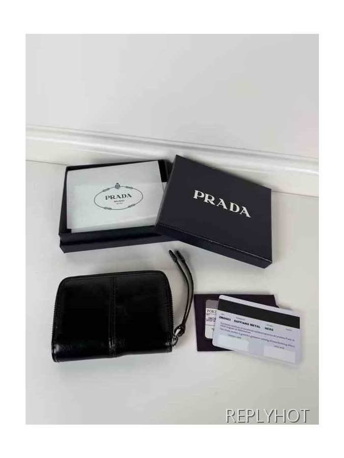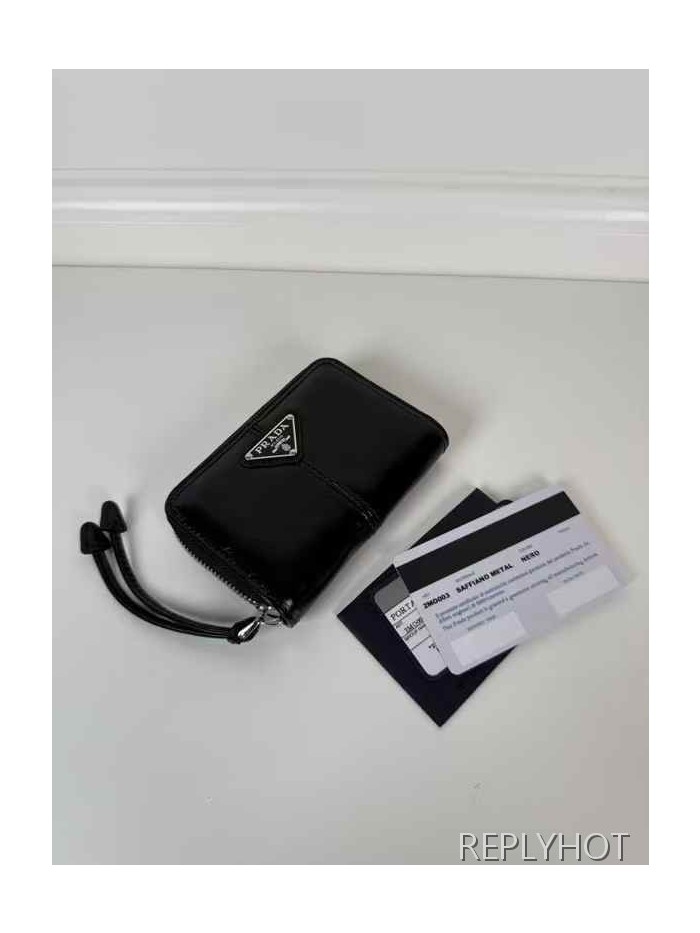 프라다 2025 스틸 사피아노 와펜 지퍼 스트랩 반지갑 지갑