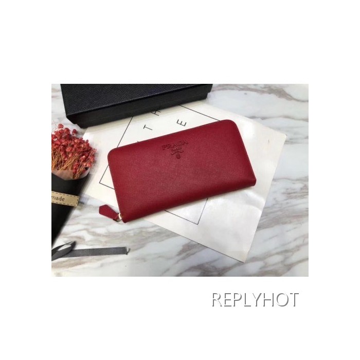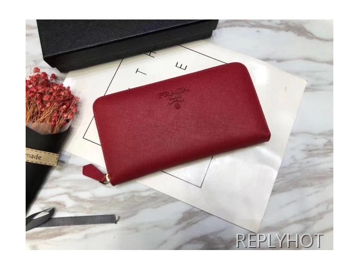 Prada 프라다 여성용 사피아노 지퍼 장지갑 레드,핑크