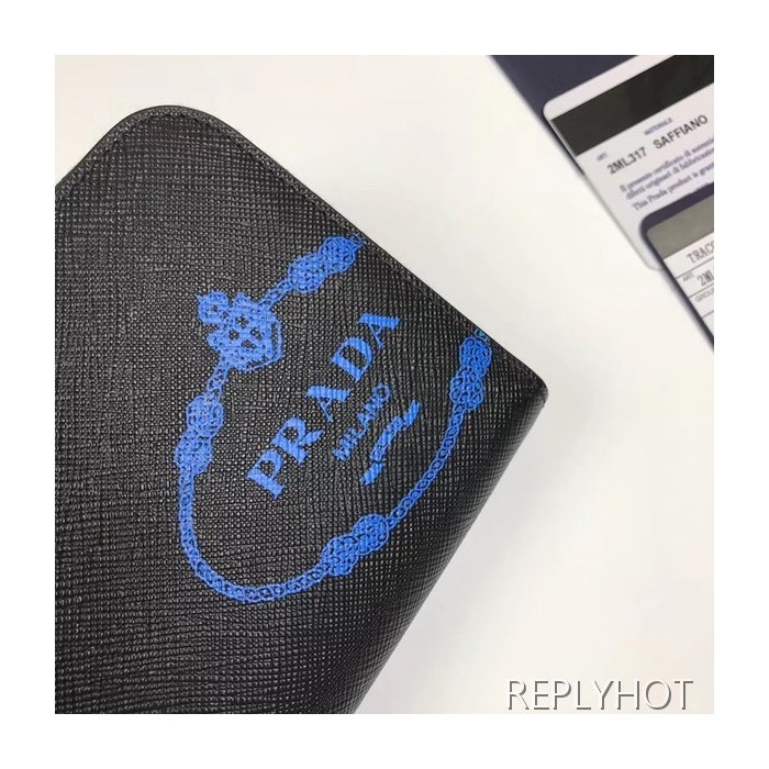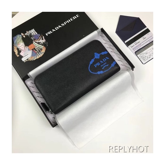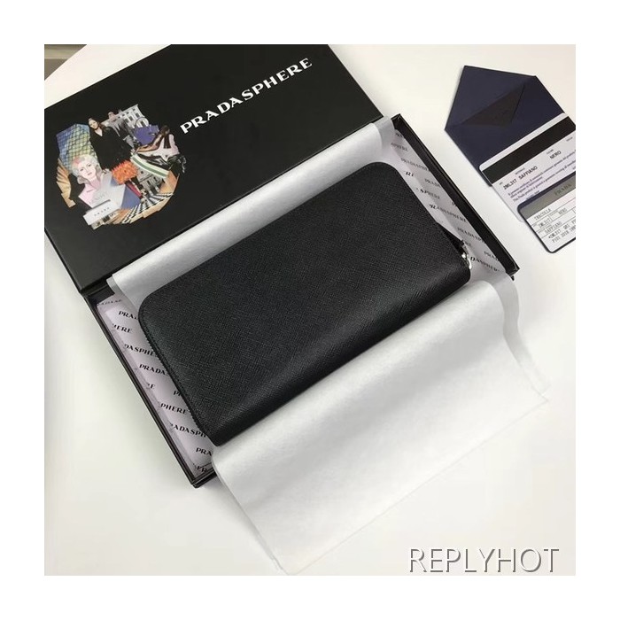 Prada 2020 Saffiano Mens Zip Round Wallet, 2ML317