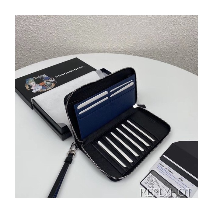 • 프라다 2020 사피아노 남성용 지퍼 라운드 장지갑,PRAW0172,20CM.블랙블루,네이비그린