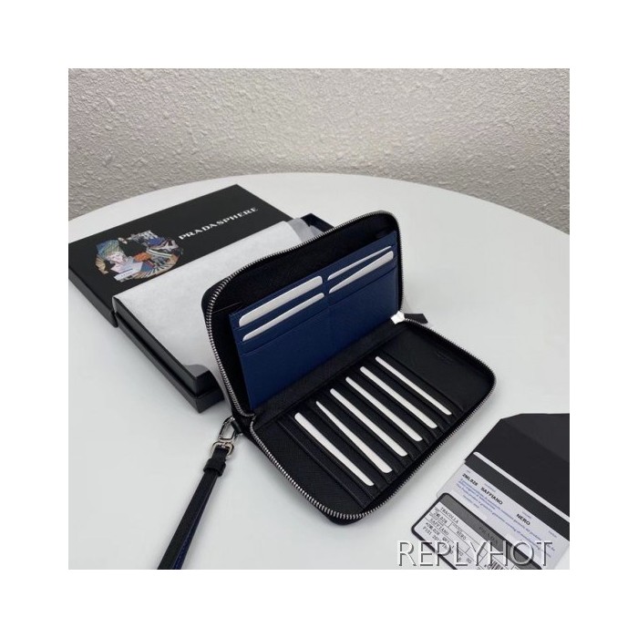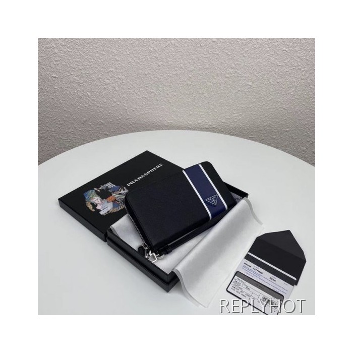 Prada 2020 Saffiano Mens Zip Round Wallet, 2ML028
