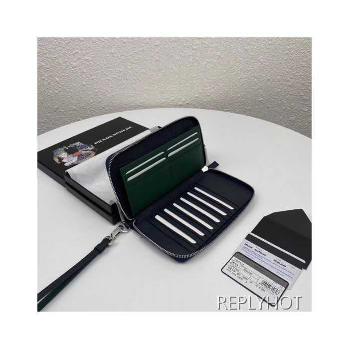 • Prada 2020 Saffiano Mens Zip Round Wallet, 2ML028