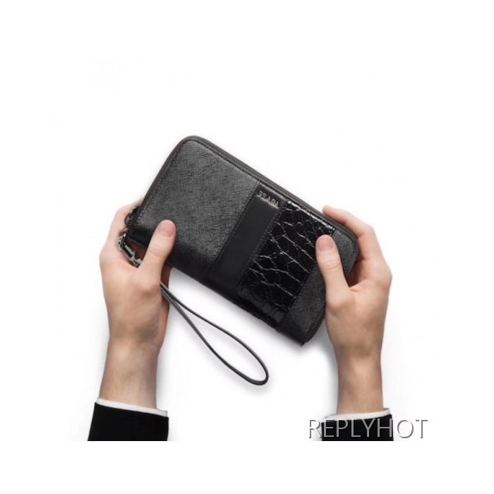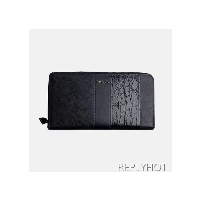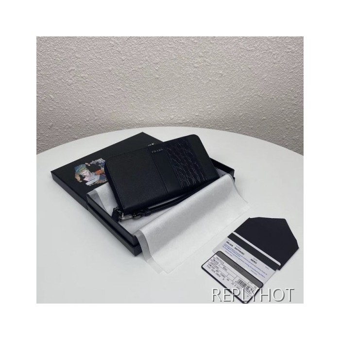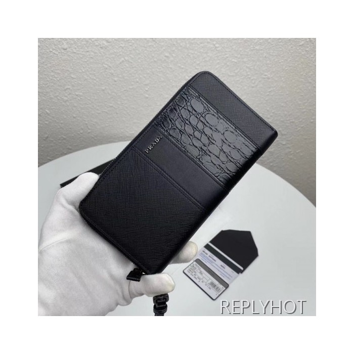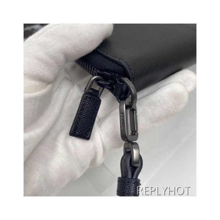 • Prada 2020 Saffiano Mens Zip Round Wallet, 2ML028