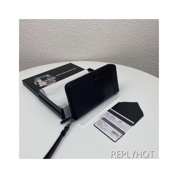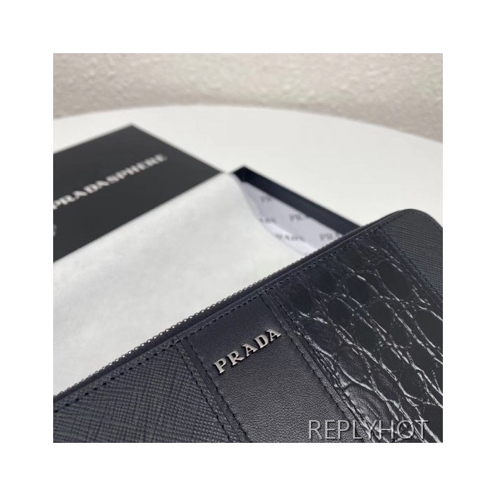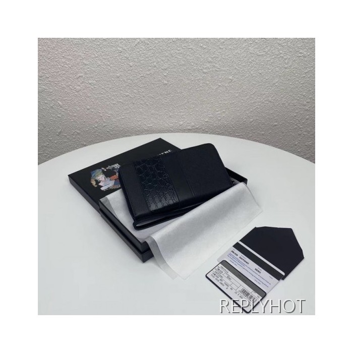 Prada 2020 Saffiano Mens Zip Round Wallet, 2ML028