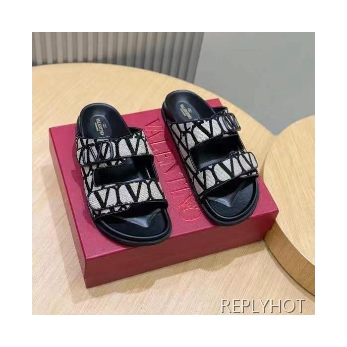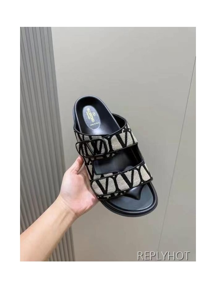 발렌티노 2025 VLogo Toile Iconographe double strap 샌들 슬리퍼