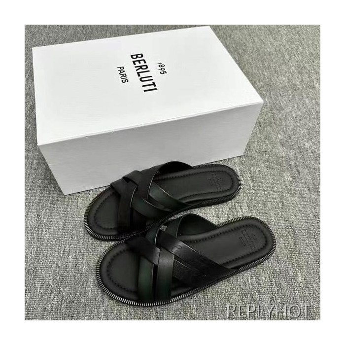 벨루티 2025 브레이드 디테일 시프노스 패턴 가죽 샌들 슬리퍼 신발 > 슬리퍼