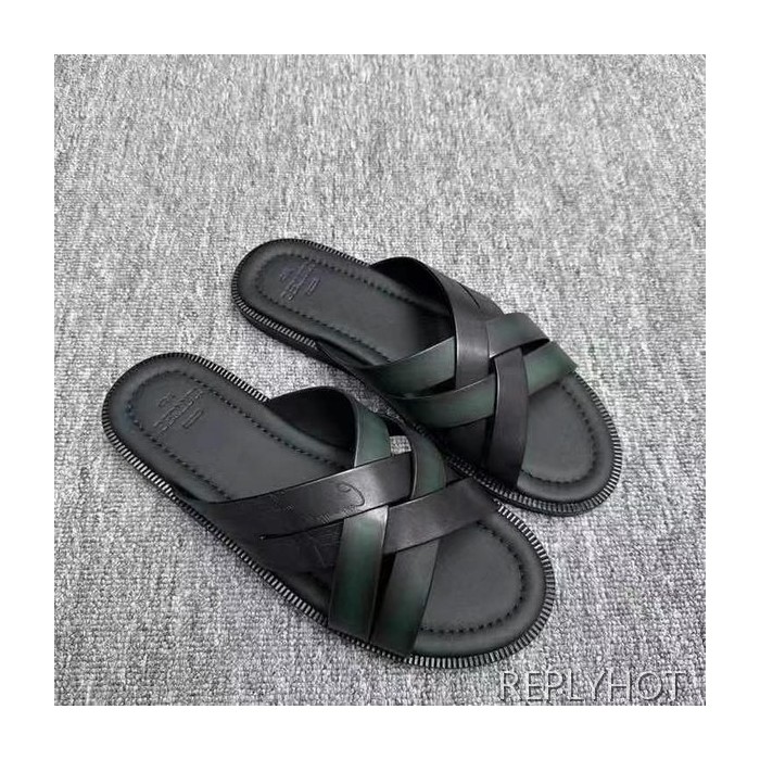벨루티 2025 브레이드 디테일 시프노스 패턴 가죽 샌들 슬리퍼 신발