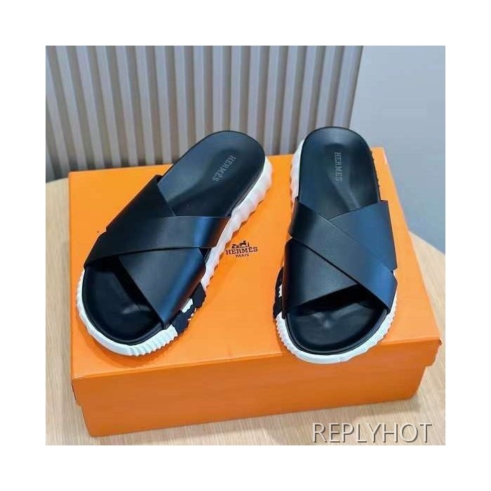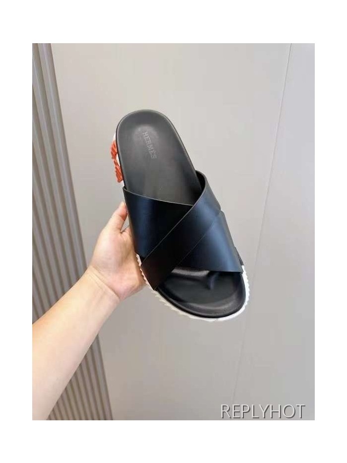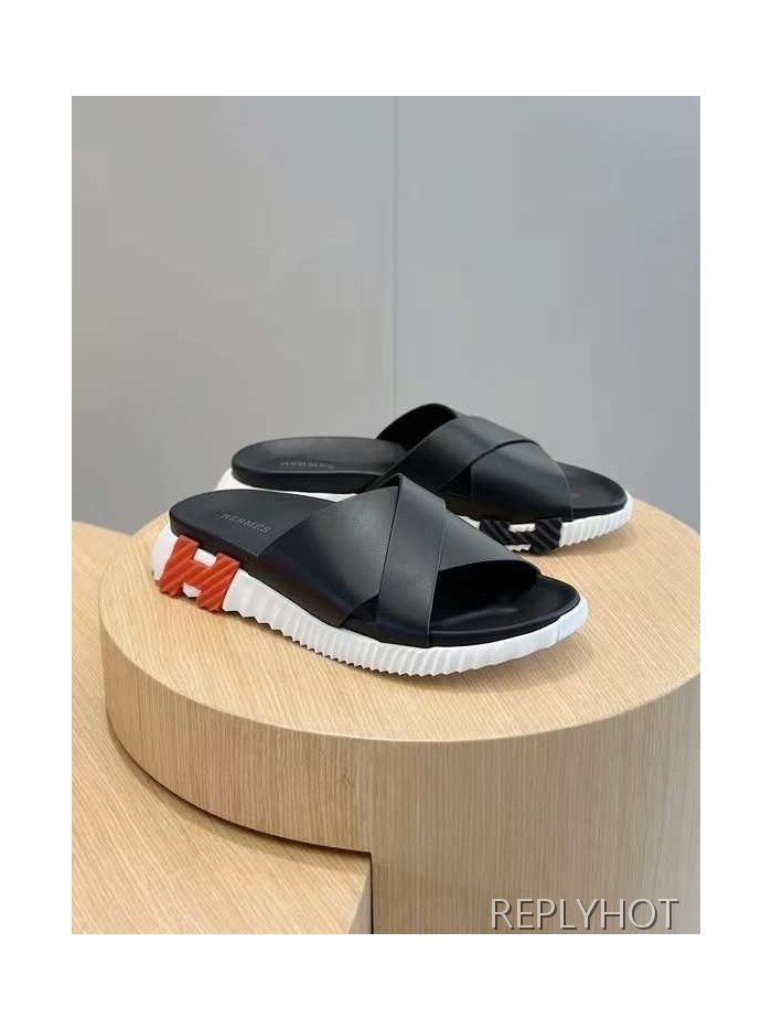 에르메스 2024 INFRA 인프라 레더 슬라이드 샌들 뮬 슬리퍼