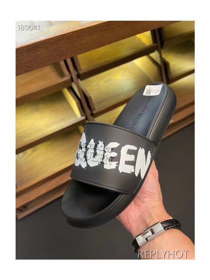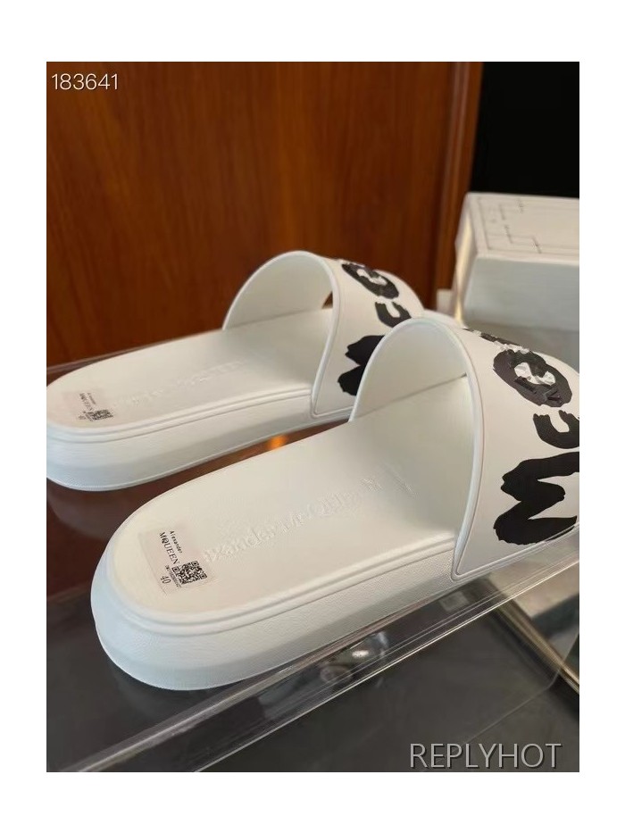 알렉산더맥퀸 2022 로고 레이어 프린팅 비치 샌들