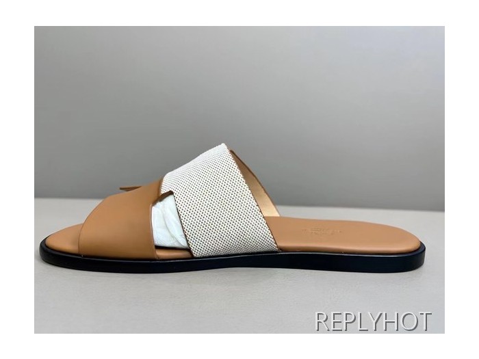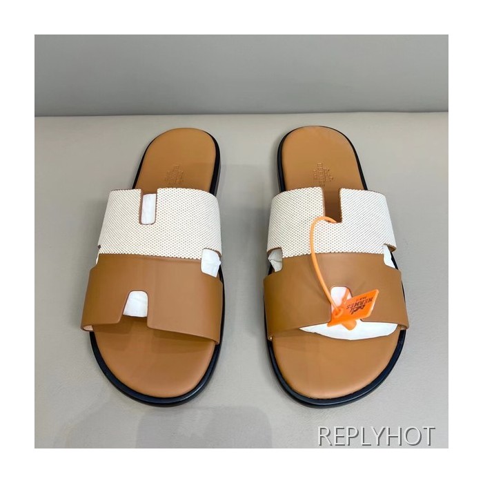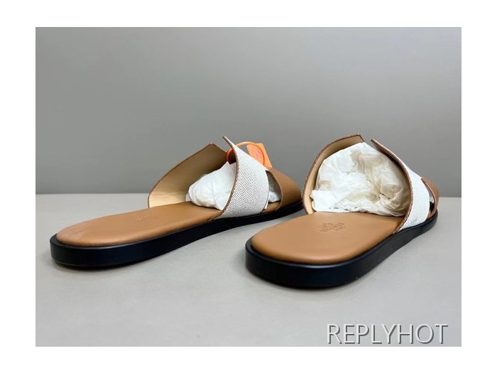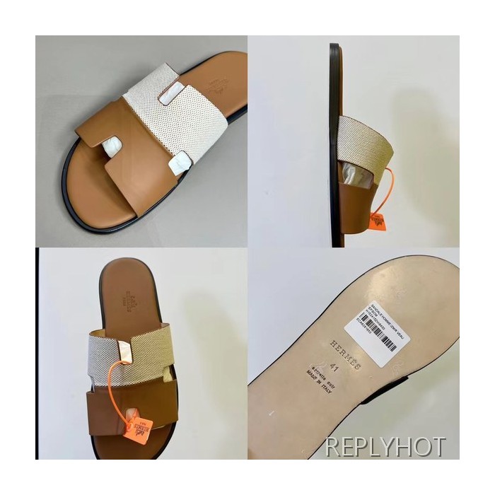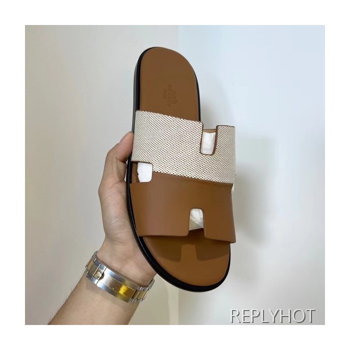 에르메스 2022 투톤 캔버스 브라운 이즈미르 샌들