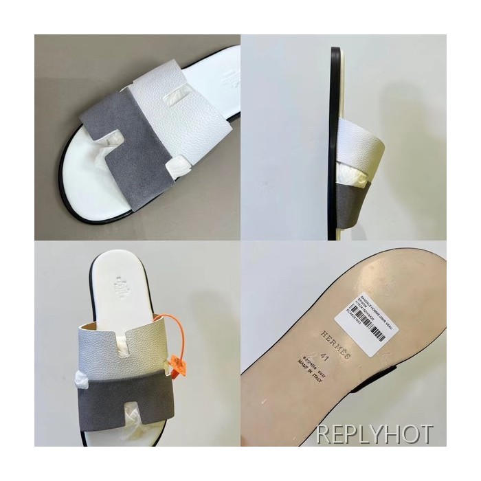 에르메스 2022 투톤 화이트 스웨이드 이즈미르 샌들