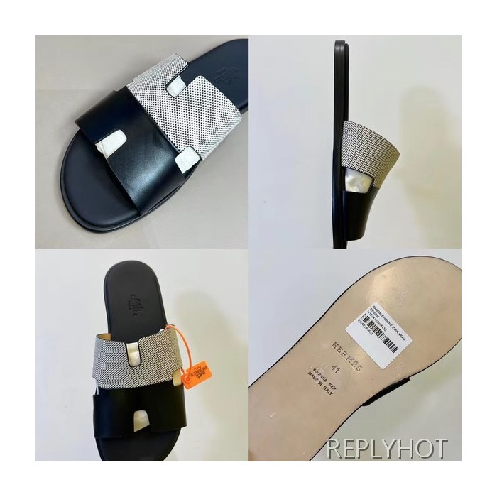 에르메스 2022 투톤 캔버스 블랙 이즈미르 샌들