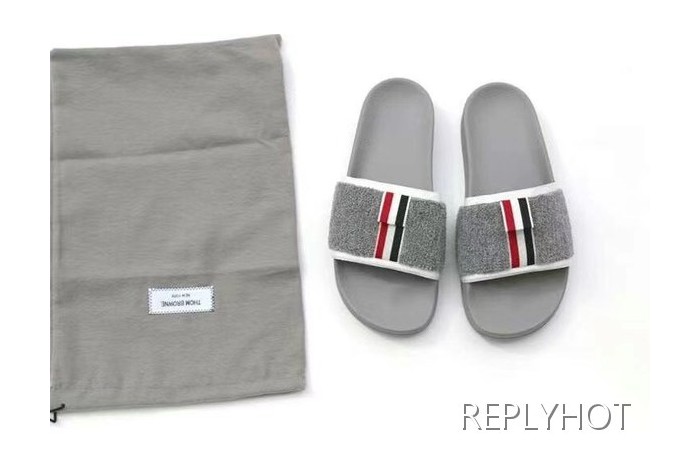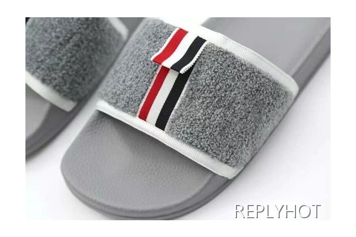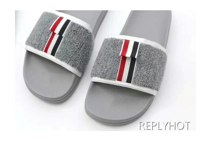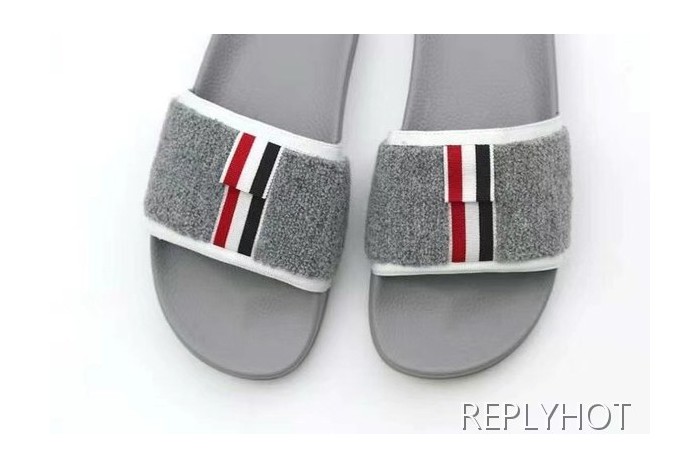 톰브라운 2022 그레이 화이트 파이핑 울 레이어 비치 샌들 슬라이드 > 샌들