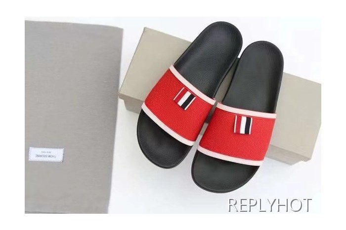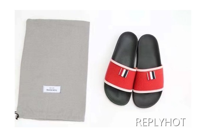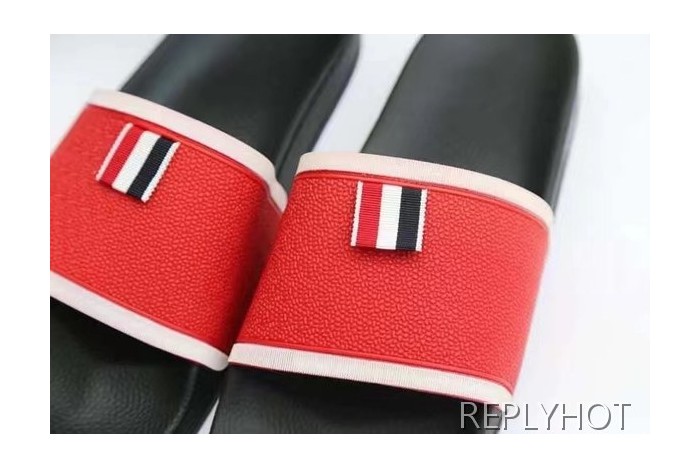 톰브라운 2022 레드 화이트 파이핑 테이프 비치 샌들 슬라이드