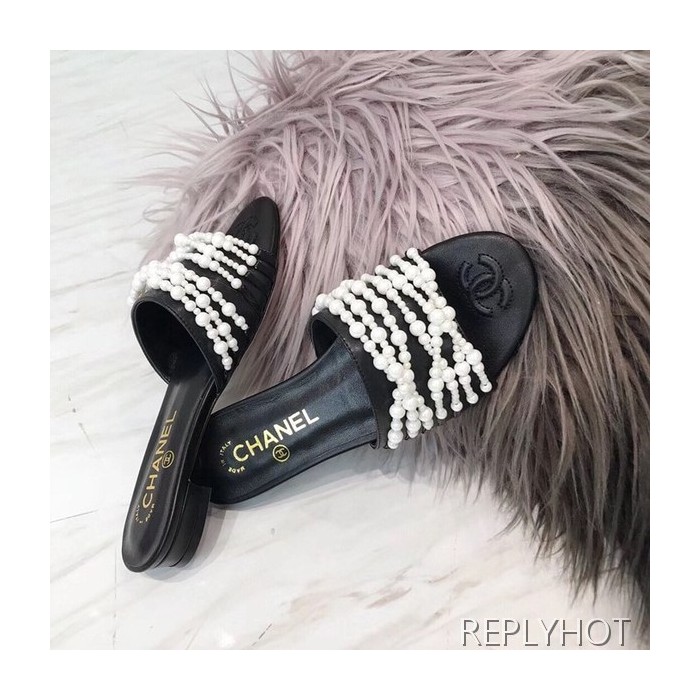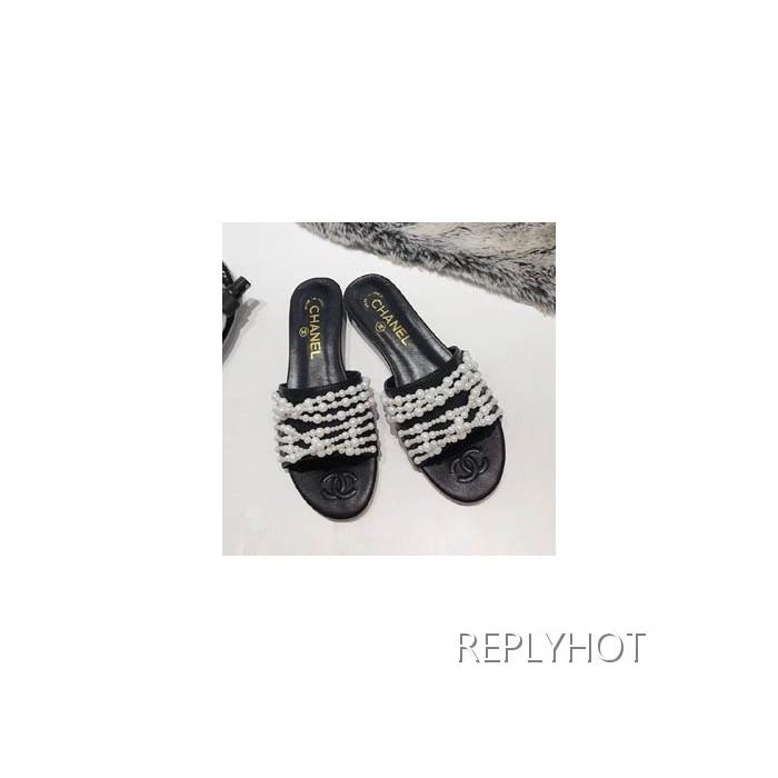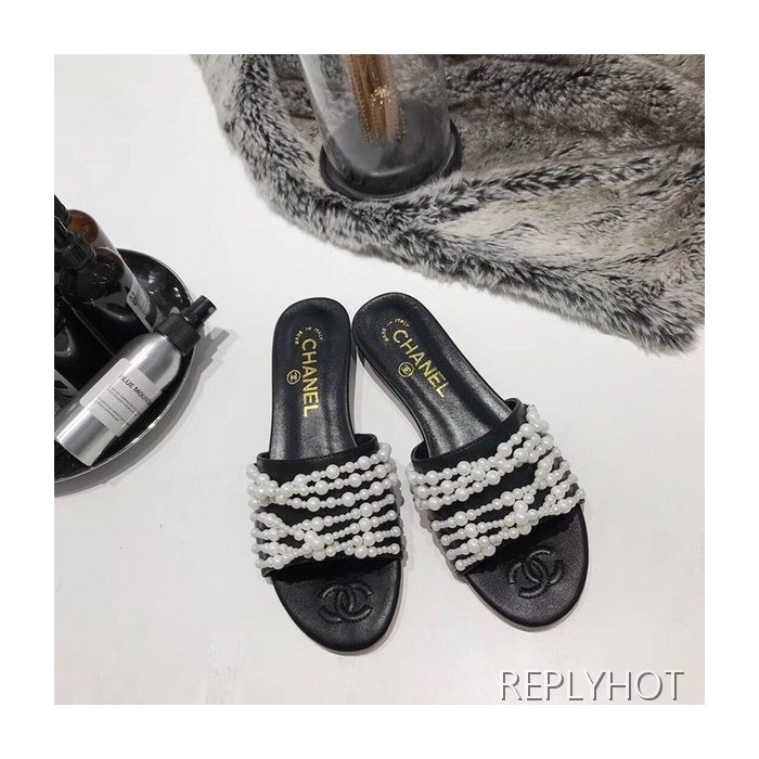 샤넬 진주 슬리퍼 블랙