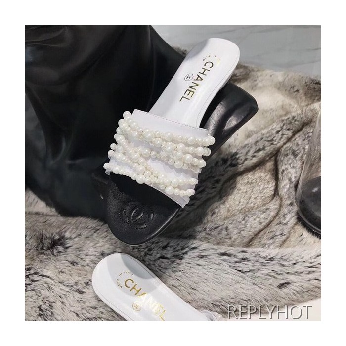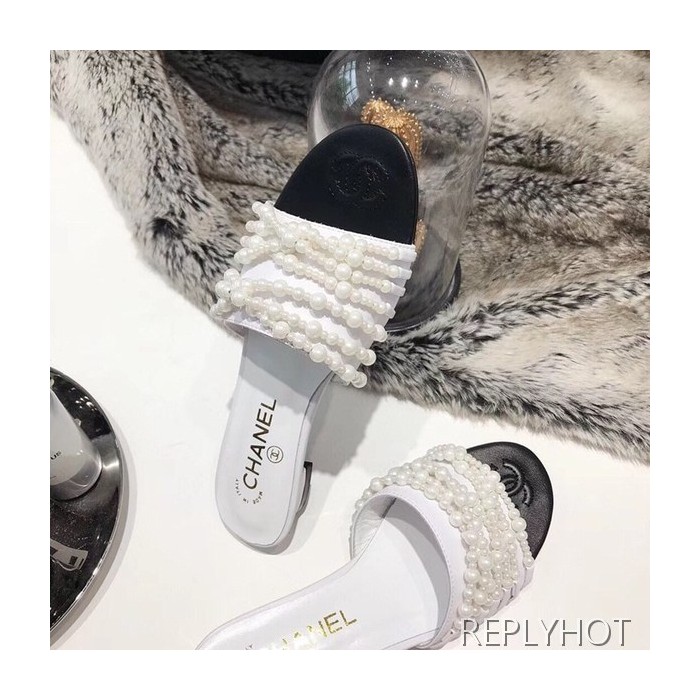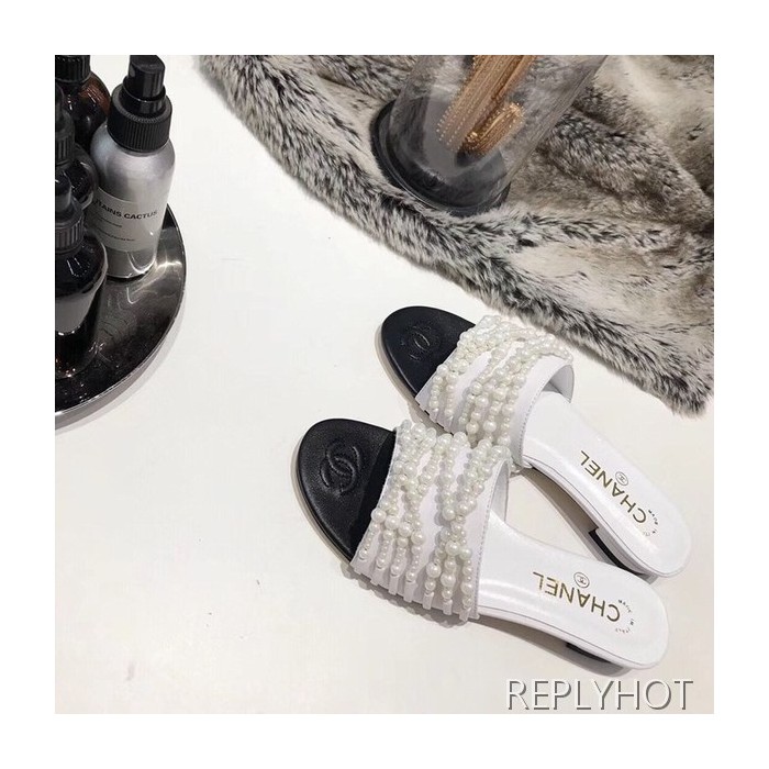 샤넬 진주 샌들 화이트