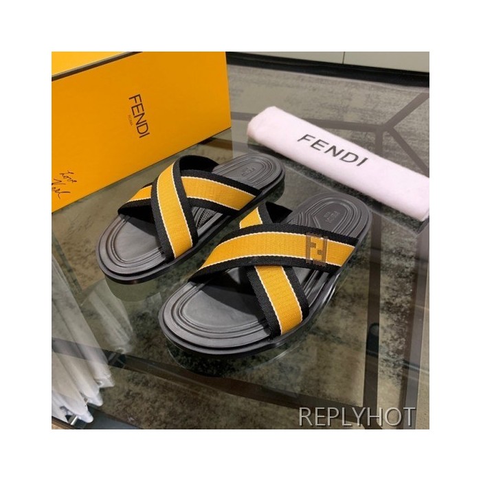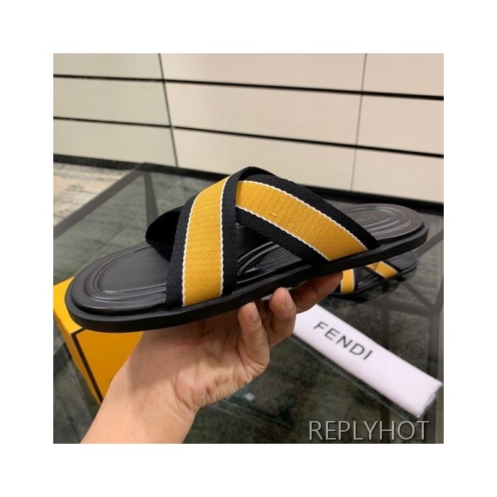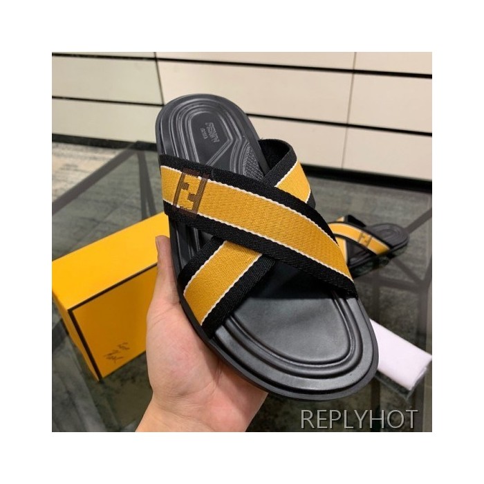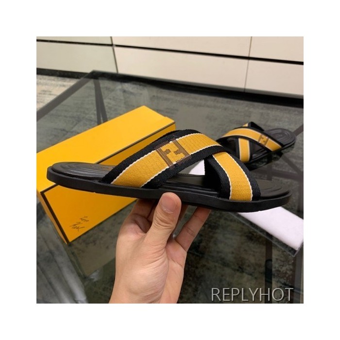 Fendi 2020 Mens Leather & Knit Slipper