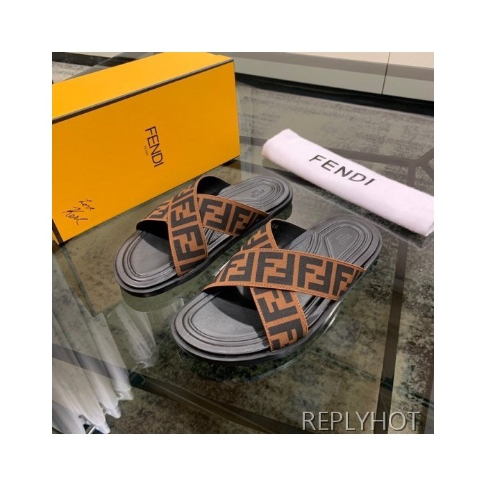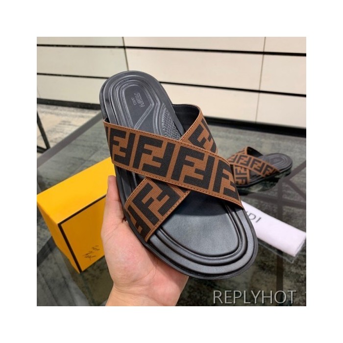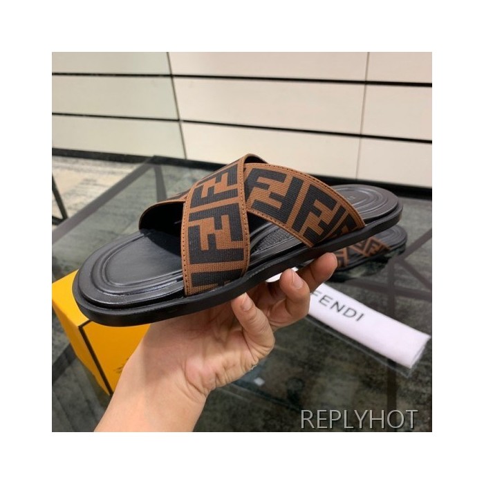 Fendi 2020 Mens Leather & Knit Slipper